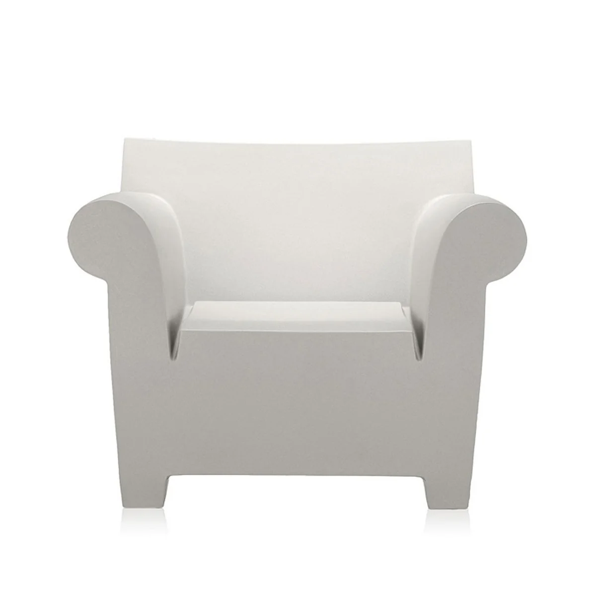 Zusammen mit dem Sofa und dem kleinen Tisch, die in den gleichen Ausführungen und Farben erhältlich sind, bildet Bubble Club von Kartell heute eine wahre Produktfamilie, eine "industrielle Couchgarnitur".