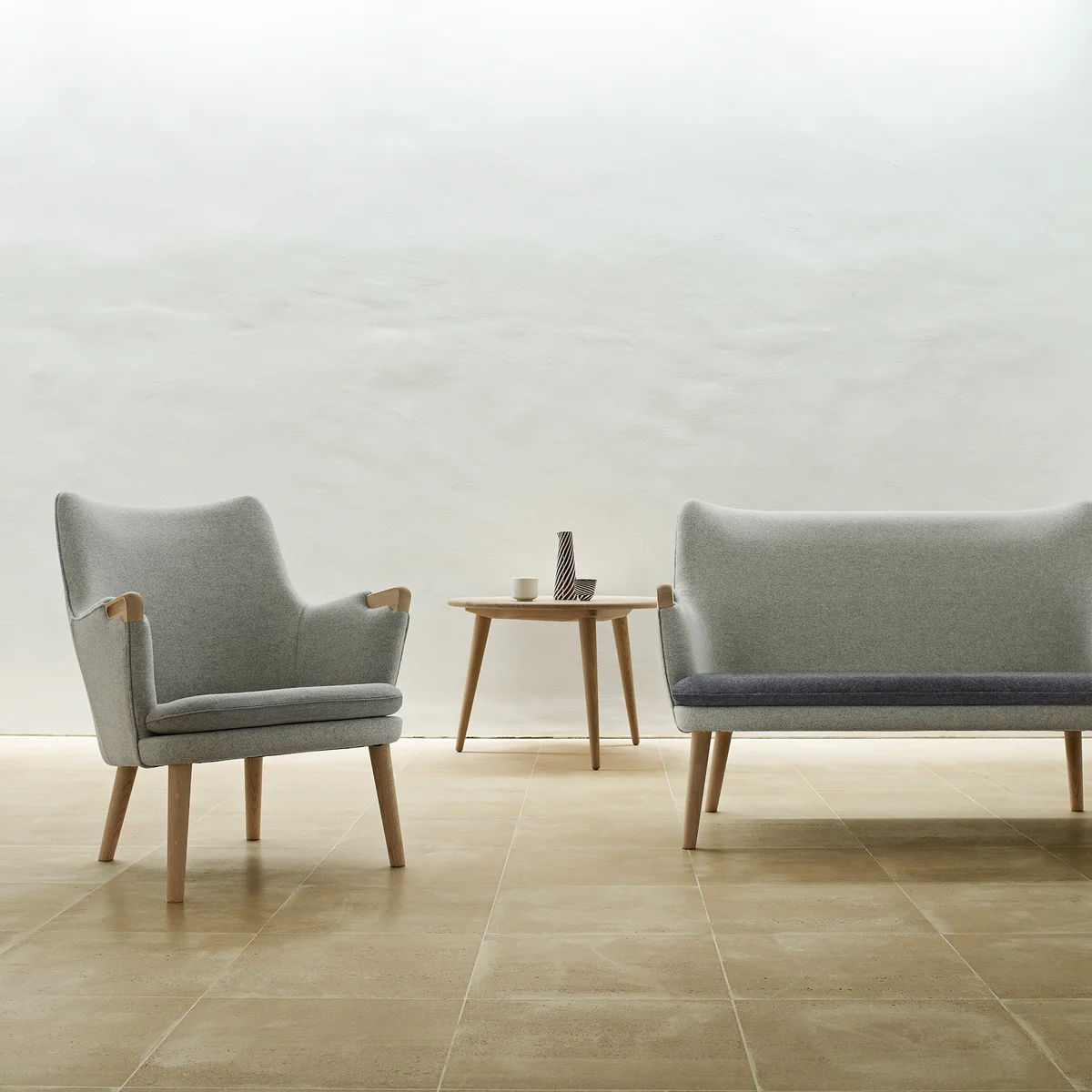Einzeln als Lesesessel im Wohnzimmer platziert oder in eine bestehende Sitzecke integriert, setzt der CH71 Sessel elegante Akzente im Ambiente und lädt zum entspannten Verweilen ein. Für einen einheitlichen Look ist zudem das passende CH72 Sofa erhältlich. Auf Anfrage kann der Sessel auch in anderen Farben und Stoffvarianten bestellt werden.