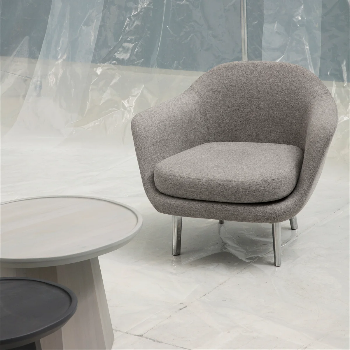 Die Polsterung des Sessels besteht aus geformtem PU-Schaum, der für Komfort sorgt und den Sessel in Form hält. Der Bezug besteht aus 70% Wolle und 30% Flachs, wodurch der Sessel noch bequemer wird. Filigrane, leicht abgewinkelte Beine aus Aluminium runden das Gesamtbild des Sessels ab und lassen den Korpus auf stilvolle Weise über dem Boden schweben. So erhält der Sessel eine luftig-leichte Erscheinung.