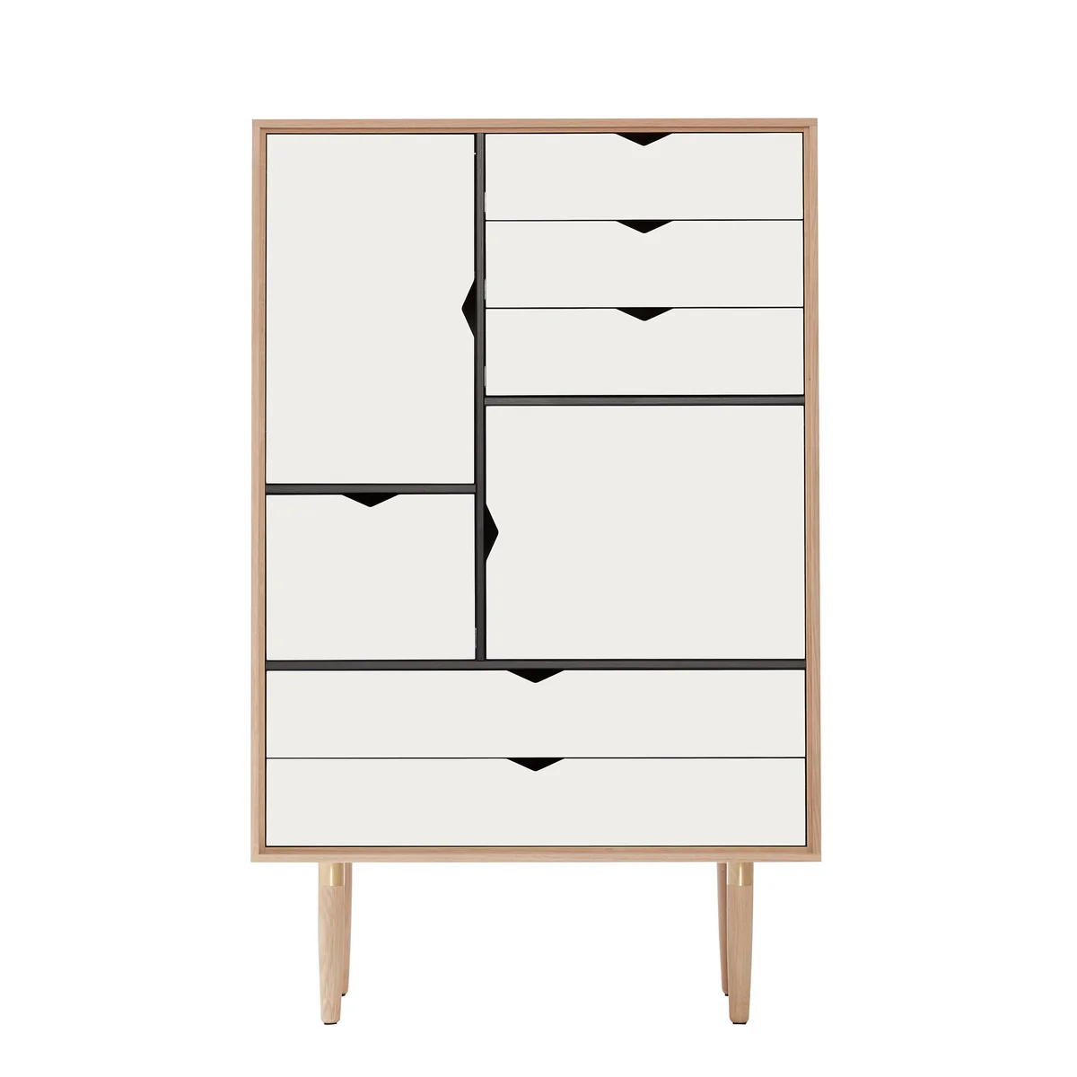 Die S5 Kommode mit einfarbiger Front von Andersen Furniture ist die schmale Version der S3 Kommode und somit optimal für kleinere Wohnräume. Die Idee zu den Kommoden stammt von byKATO, die sich von klassischen Sekretären aus Dänemark inspirieren ließen.