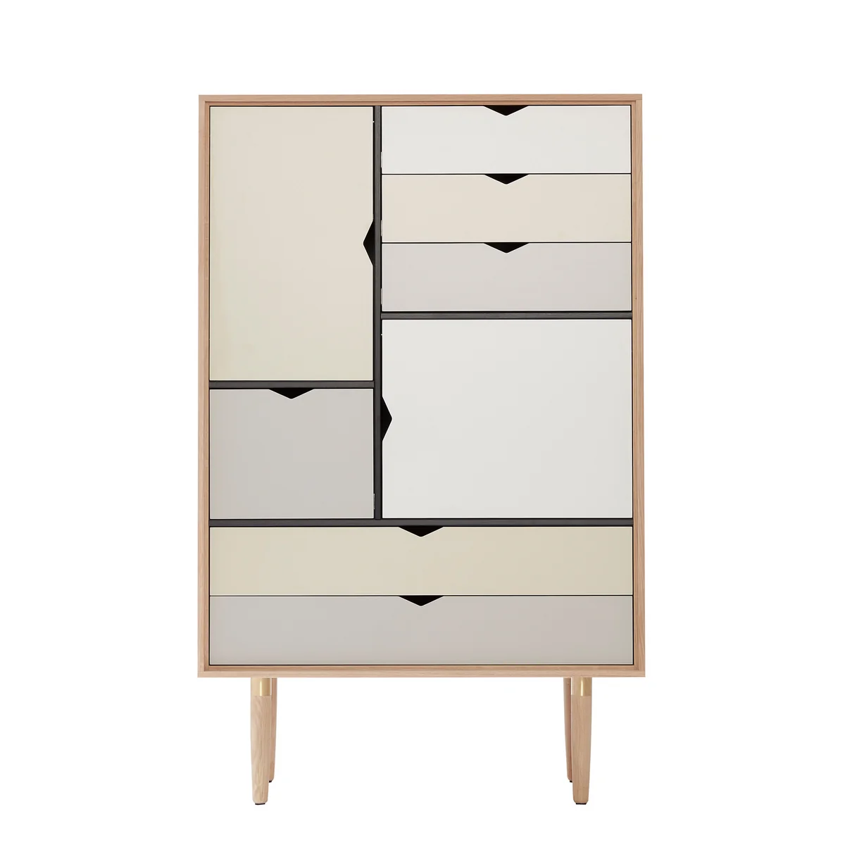 Die S5 Kommode mit mehrfarbiger Front von Andersen Furniture ist die schmale Version der S3 Kommode und somit optimal für kleinere Wohnräume. Die Idee zu den Kommoden stammt von byKATO, die sich von klassischen Sekretären aus Dänemark inspirieren ließen.