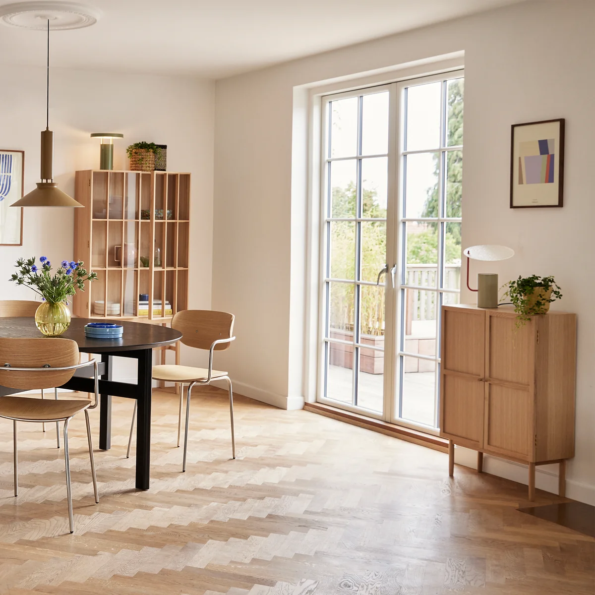 Gefertigt aus FSC®-zertifiziertem Eichenholz, zeichnet sich der Schrank durch seine Robustheit und Haltbarkeit aus. Die Abnutzung dieses besonderen Holzes ist gering - somit kann der Schrank über mehrere Jahre verwendet werden.