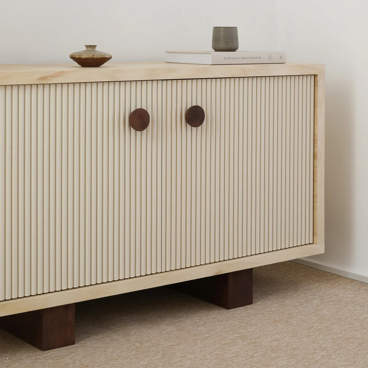 Skulpturales Sideboard mit strukturierten Türen und japanischer Formsprache