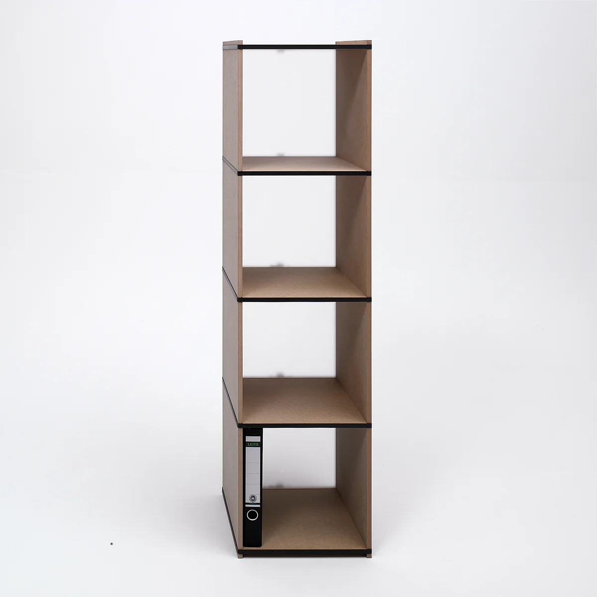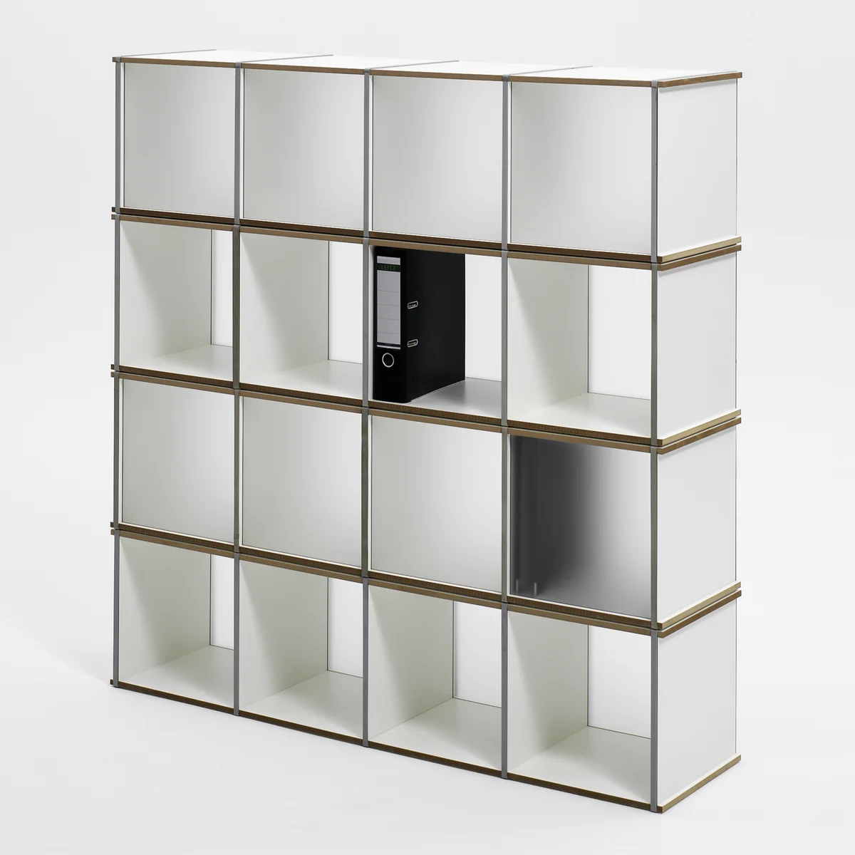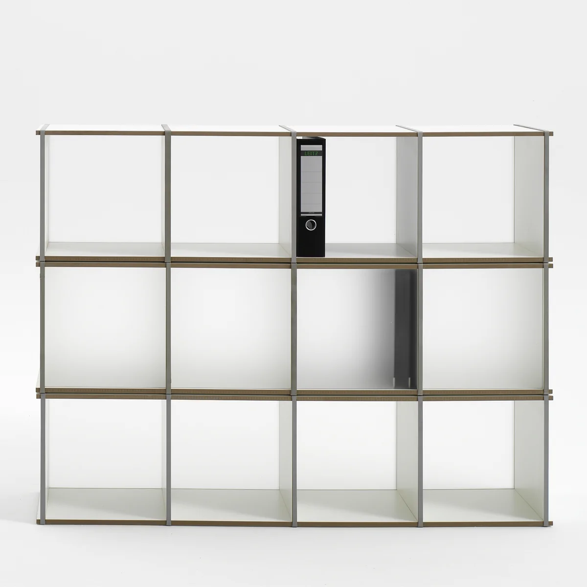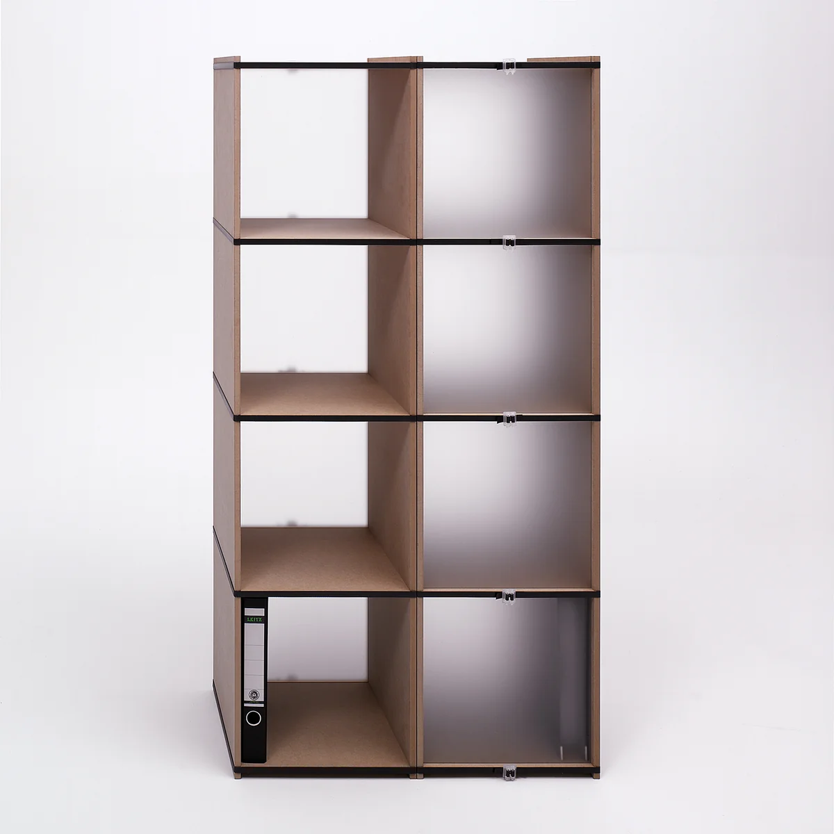 Das Aktenpack packt Akten ab: Das Steckmöbel von Tojo bietet viel Platz und lässt sich einfach vergrößern oder verkleinern. Die einzelnen Elemente des Tojo Aktenpack Regales werden lediglich über 5 umlaufende, schwarze Gummiringe zusammengehalten.