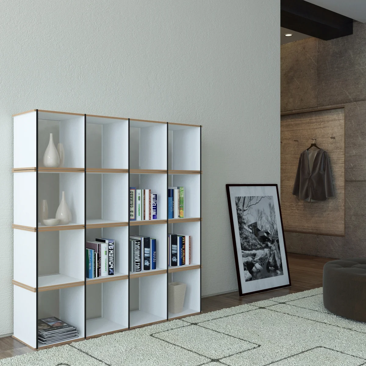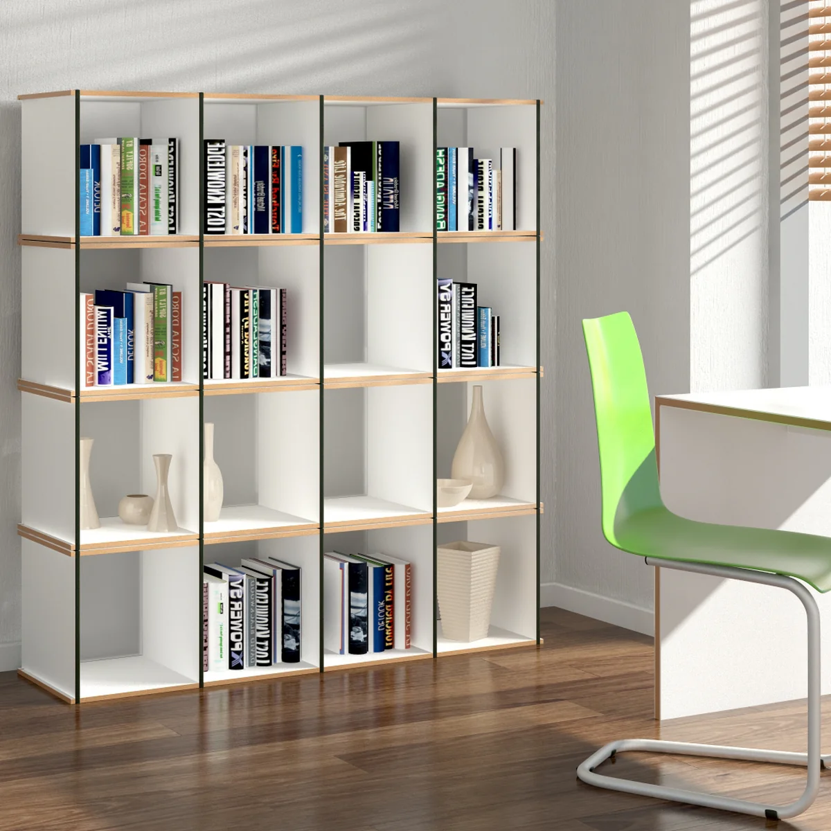 Das Möbel besticht durch seine Leichtigkeit der Konstruktion und die Schlichtheit des gesamten Erscheinungsbildes und bietet darüber hinaus ausreichend Platz, um Aktenordner und andere Dinge zu verstauen. Damit ist der modulare Schrank von Tojo der perkfekte Begleiter für das Büro.