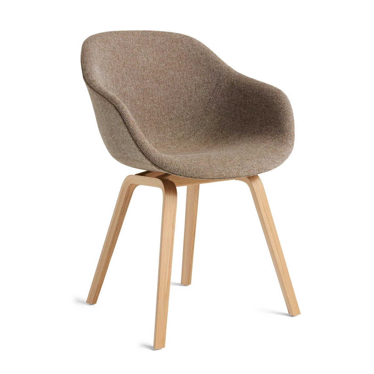 Der About A Chair AAC 223 besitzt Armlehnen und ein Holz-Vierbeingestell. Die Sitzschale besteht aus durchgefärbtem Polypropylen. Das Untergestell, sowie der Bezug sind in verschiedenen Varianten erhältlich.