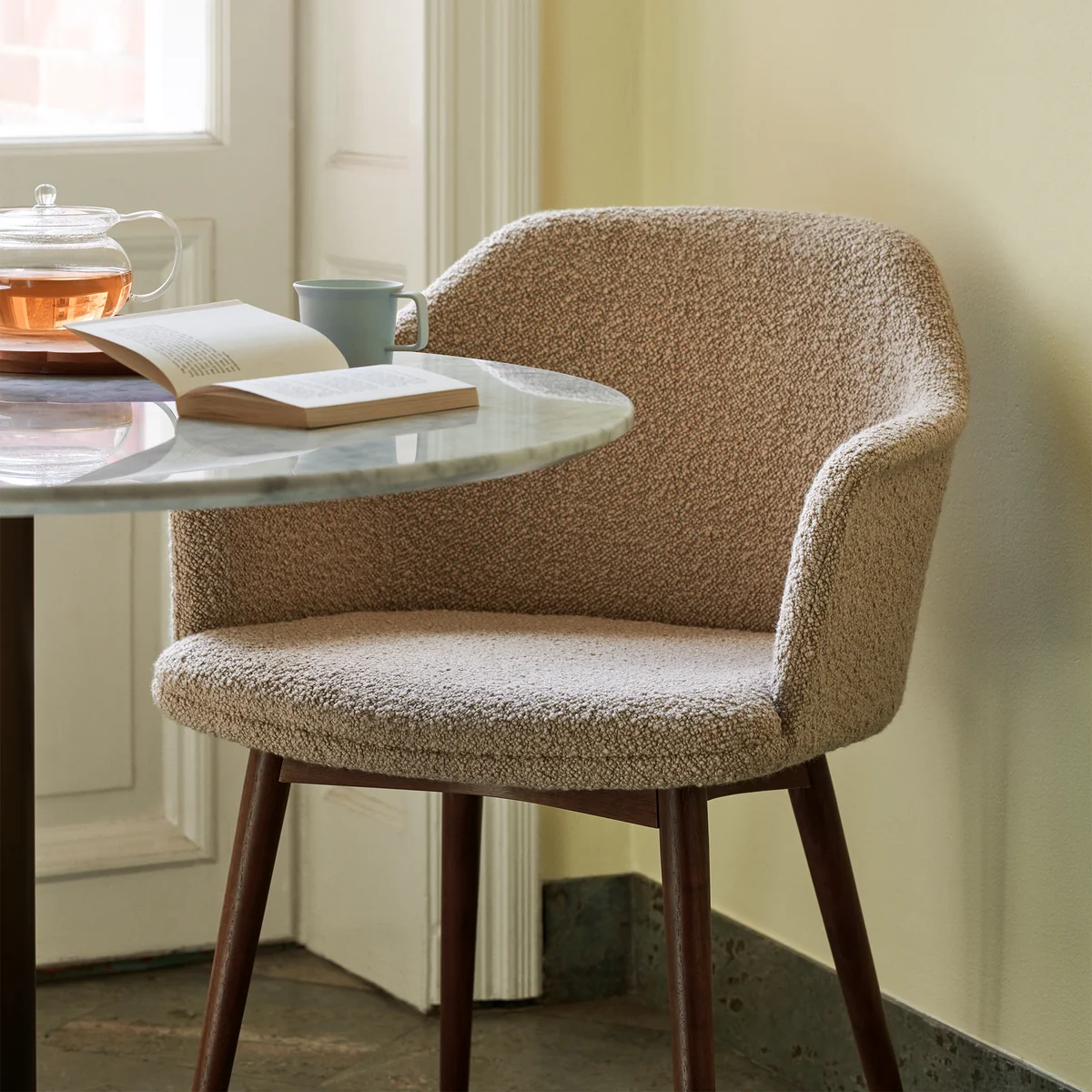 Der Rely HW79 Armlehnenstuhl des dänischen Herstellers &Tradition ist eine Weiterentwicklung des ikonischen Rely-Stuhls. Dieses Modell begeistert mit Massivholzbeinen, wodurch der Stuhl wunderbar vielseitig vor dem Schreib- oder Esstisch platziert werden kann. Die Schale wird aus 100% recyceltem Polypropylen mit Glasfasern gefertigt. Sie ist mit HR-Schaumstoff in unterschiedlichen Bezügen erhältlich.