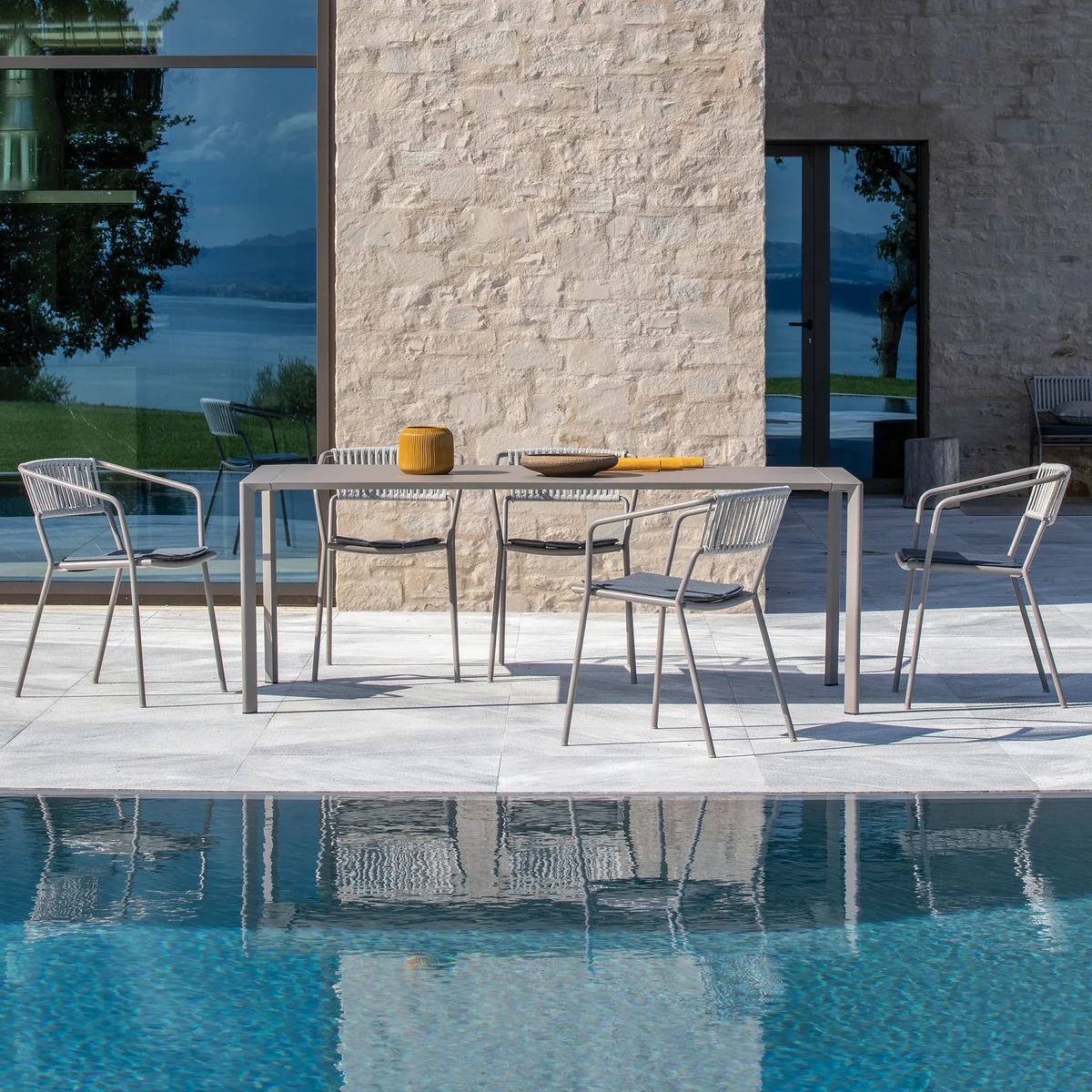 Der Slot Armlehnstuhl von Vermobil vereint klare Geometrien, sanfte Rundungen und galvanisierten Stahl zu einem modernen Outdoor-Sessel mit starker Präsenz. Die Mischung aus massiven Flächen und durchscheinenden Elementen sorgt für einen spannenden visuellen Kontrast, der Leichtigkeit und Stabilität zugleich vermittelt. Dank seiner pulverbeschichteten Oberfläche ist der Slot Armlehnstuhl witterungsbeständig und pflegeleicht – ideal für den Einsatz im Garten, auf der Terrasse oder in öffentlichen Außenbereichen. Die harmonisch abgerundeten Ecken und das zeitgemäße Design verleihen dem Sessel eine jugendliche Eleganz, die sowohl einzeln als auch in Kombination mit anderen Möbelstücken der Slot-Serie überzeugt.