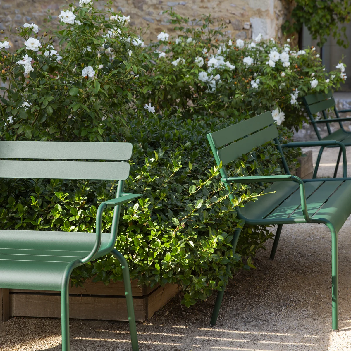 Die Luxembourg Gartenbank mit Armlehne von Fermob zeichnet sich durch die schlichte Ästhetik aus, mit der jede Garteneinrichtung geziert und ergänzt werden kann. Die Gartenbank verfügt über eine wetter- und UV-beständige Beschaffenheit. In unterschiedlichen Ausführungen erhältlich, kann die Gartenbank an einen Tisch gestellt werden oder seinen Platz an der Wand einnehmen und mit unterschiedlichen Sitzkissen ergänzt werden. Durch die Armlehnen bekommt die Gartenbank einen besonderen Komfort.