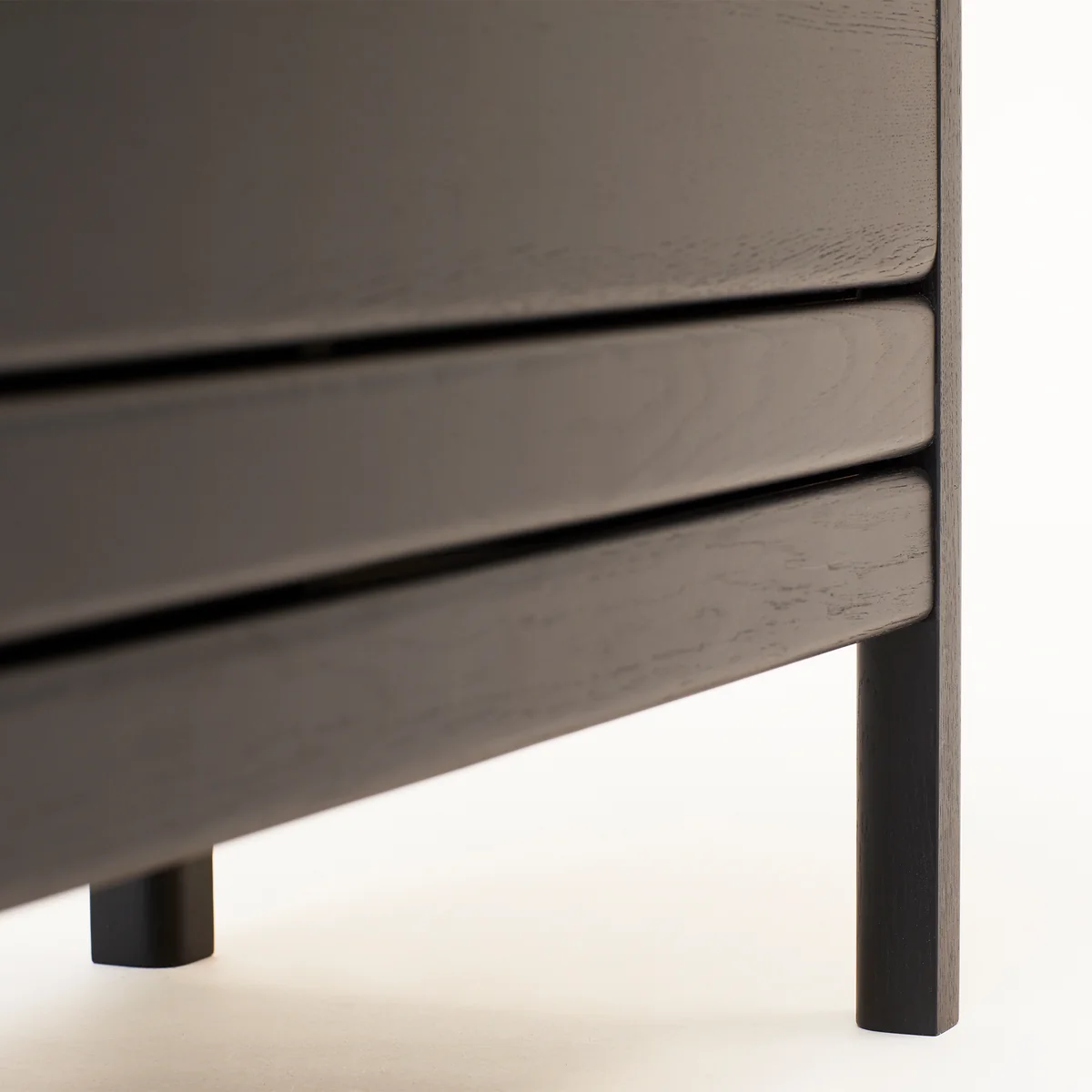 Die A Line Truhenbank von Form & Refine ist die Neuauflage der klassischen Truhenbank, bei der Funktionalität auf cleane Formen trifft. Die Bank wirkt durch ihre kurzen Beine leicht, ist aber insgesamt sehr stabil. Mithilfe eines Lederbandes lässt sich die Klappe der Truhe anheben und legt den Blick auf die zwei separaten Fächer im Inneren des Stauraums frei. Dank des minimalistischen Designs kann sie nicht nur im Flur stehen, sondern auch im Schlafzimmer oder als Sitzgelegenheit im Wohnzimmer.