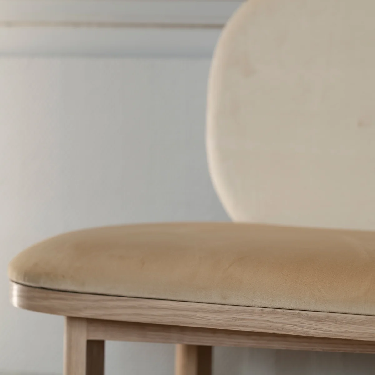 - Gefertigt aus massivem Eichenholz mit Schaumstoffpolsterung und Samtbezug