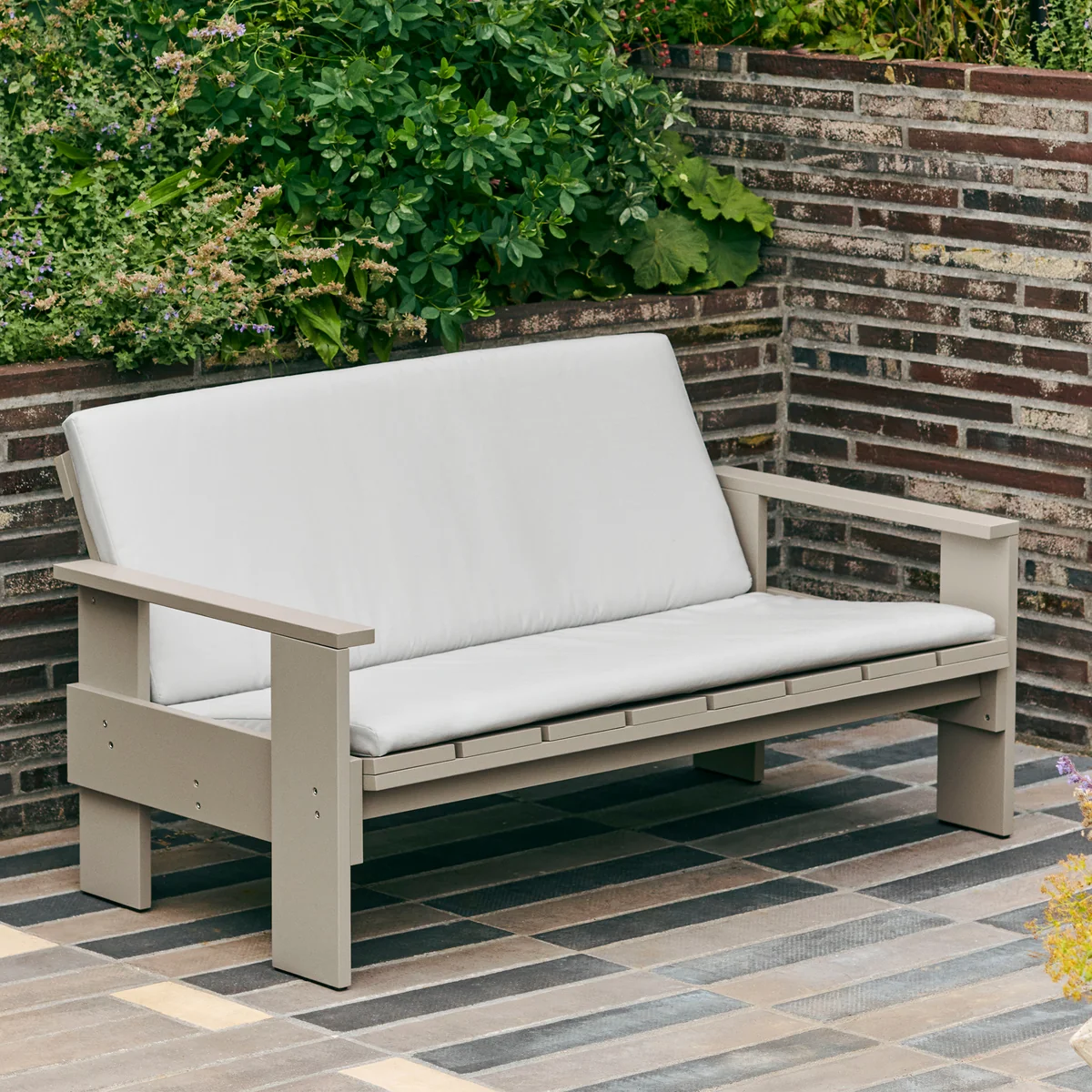 Seine Schlichtheit und sein räumliches Design spiegeln die architektonischen Prinzipien des Designers wider - es bietet Funktionalität und Komfort, ohne übermäßig viel Platz einzunehmen. Das aus massivem Kiefernholz gefertigte Crate Lounge Sofa ist in verschiedenen Farbvarianten erhältlich und mit einer Lackierung auf Wasserbasis versehen, wodurch es sich gut für verschiedene Außenbereiche eignet. Optional können Sitzkissen aus ausgewählten Textilien hinzugefügt werden, um den Komfort zu erhöhen.