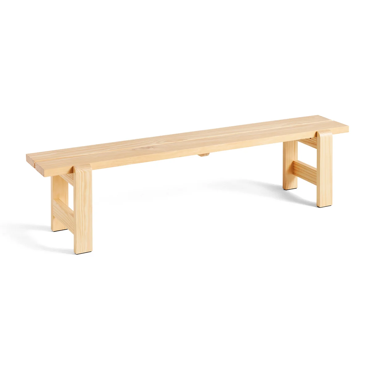 Die Weekday Bank von Hannes & Fritz für den dänischen Hersteller HAY begeistert mit ihrem simplen Design. Weekday wurde von dem Mangel an Sitzplätzen auf Dinnerpartys inspiriert. Die Inspiration für die Bank wird von der ursprünglichen Idee Menschen zusammenzubringen unterstützt. Solide, robuste Präsenz fusioniert mit abgerundeten Elementen, was insgesamt für Wärme und Vertrautheit sorgt. Wie auch klassische Picknickbänke wird Weekday aus massivem, langlebigen Kiefernholz gefertigt. Das Material erhält mit der Zeit eine wundervolle Patina. Dank der Oberflächenbehandlung kann die Bank sowohl im Innen- als auch Außenbereich platziert werden. Sie ist in unterschiedlichen Farben und Größen erhältlich.