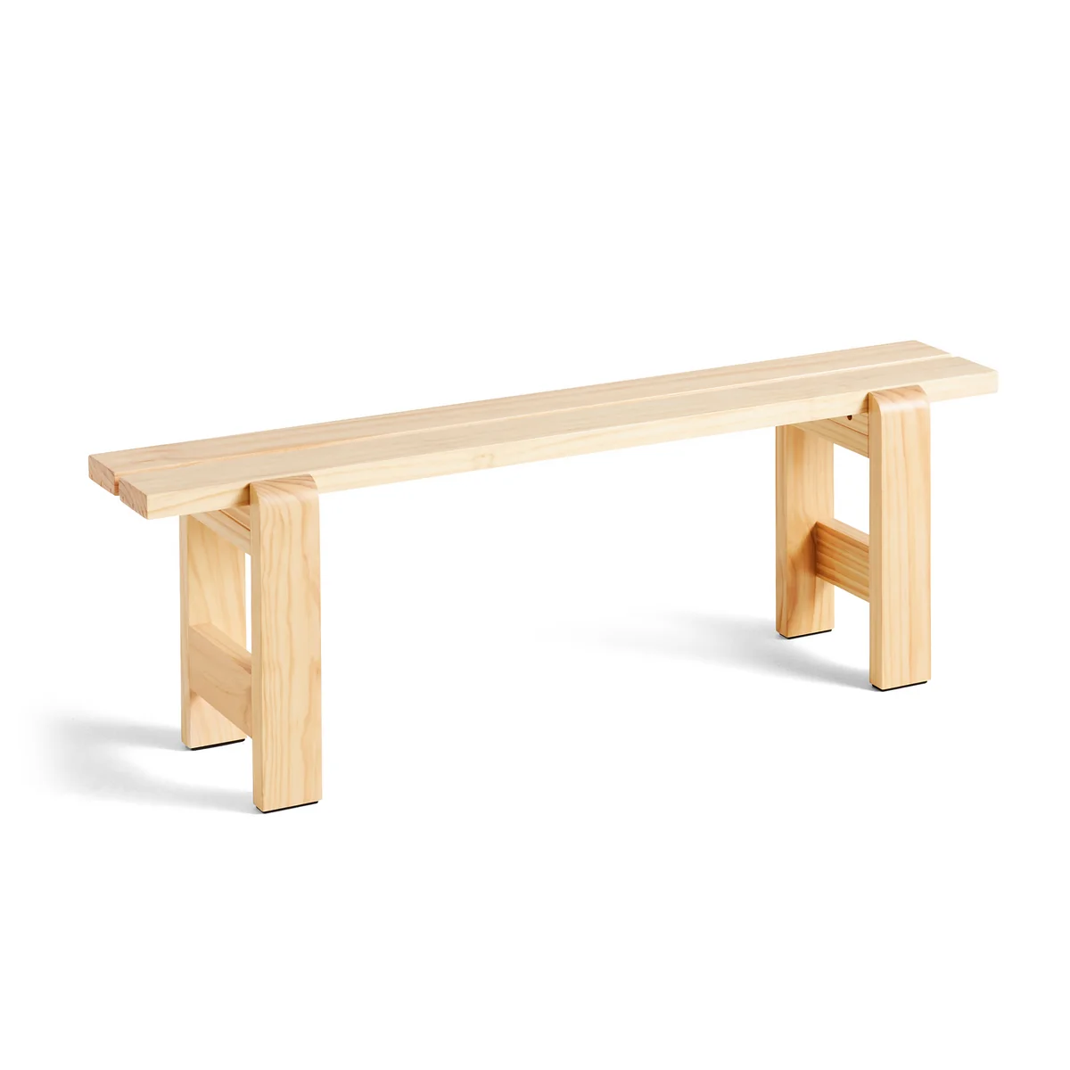 Die Weekday Bank von Hannes & Fritz für den dänischen Hersteller HAY begeistert mit ihrem simplen Design. Weekday wurde von dem Mangel an Sitzplätzen auf Dinnerpartys inspiriert. Die Inspiration für die Bank wird von der ursprünglichen Idee Menschen zusammenzubringen unterstützt. Solide, robuste Präsenz fusioniert mit abgerundeten Elementen, was insgesamt für Wärme und Vertrautheit sorgt. Wie auch klassische Picknickbänke wird Weekday aus massivem, langlebigen Kiefernholz gefertigt. Das Material erhält mit der Zeit eine wundervolle Patina. Dank der Oberflächenbehandlung kann die Bank sowohl im Innen- als auch Außenbereich platziert werden. Sie ist in unterschiedlichen Farben und Größen erhältlich.