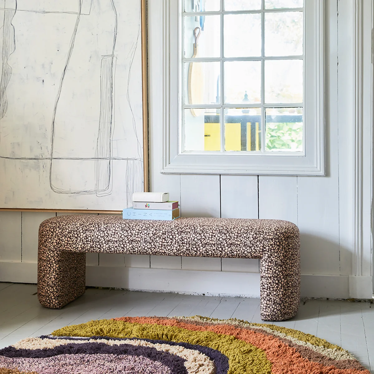 Die DORIS Vintage Bank von HKliving ist ganz von einer weichen Polyester-Polsterung umschlossen, welche mit einem ungewöhnlichen Blumendruck begeistert. Vollkommen kantenlos, aber dafür abgerundet an allen Ecken wird die Sitzbank zu einer herrlich komfortablen und ebenso stilvollen Ergänzung im Flur oder Wohnzimmer. Sie kann einerseits zum Anziehen der Schuhe dienen und andererseits als Ablage für Bücher, Kissen und Co.