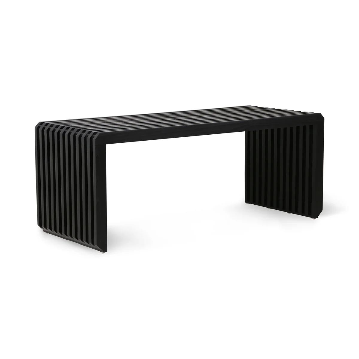 Die Slatted Bank von HKliving ist eine schlichte, und dennoch geniale Holzbank, die mit ihrer minimalistischen Formensprache echte Akzente setzt. Egal, ob im Wohnzimmer, am Esstisch, der Küche, oder im Schlafzimmer: Diese Bank ist stilvoll und gemütlich. Seinen Namen erhält die Bank durch ihr charakteristisches Design: Einzelne Holzlatten sind in einem Lattenrost-Look zu einer robusten und stabilen Bank verbaut.