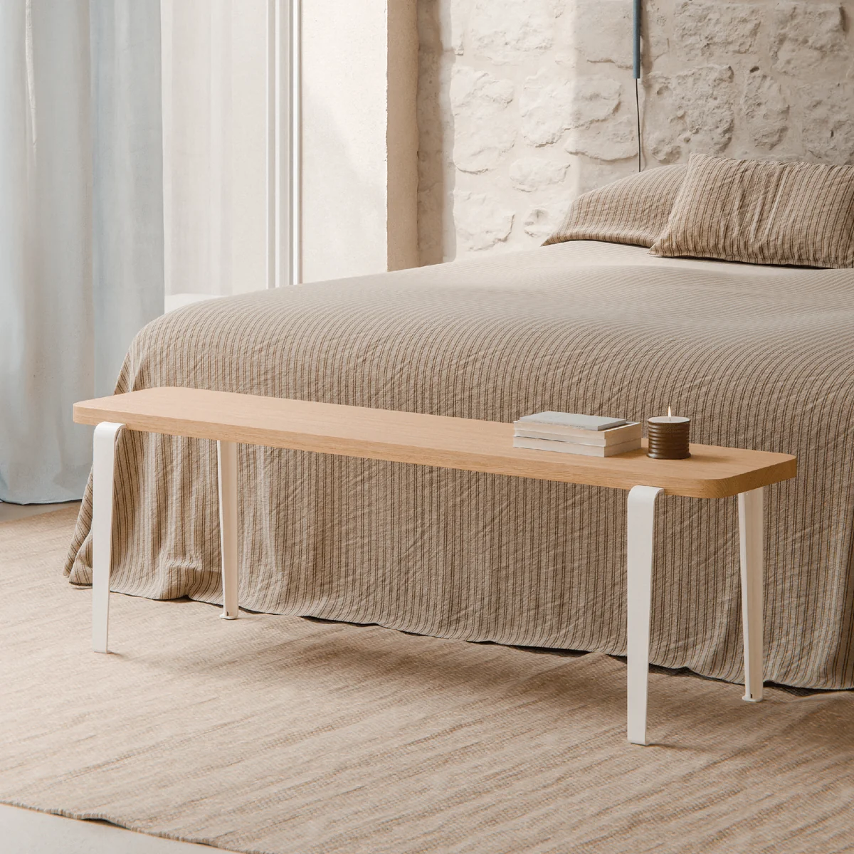Die Lou Sitzbank von TipToe überzeugt durch ihre klare Formsprache und hohe Funktionalität. Sie lässt sich flexibel als Sitzgelegenheit am Esstisch, als Beistellbank im Flur oder als minimalistisches Möbelstück im Wohnbereich einsetzen. Die Kombination aus einer massiven Holzplatte aus Eiche oder gebeizter Buche und einem pulverbeschichteten Stahlgestell verleiht der Bank Stabilität und eine moderne, zeitlose Ausstrahlung. Wahlweise einfarbig oder zweifarbig gestaltet, setzt sie dezente, individuelle Akzente im Raum.