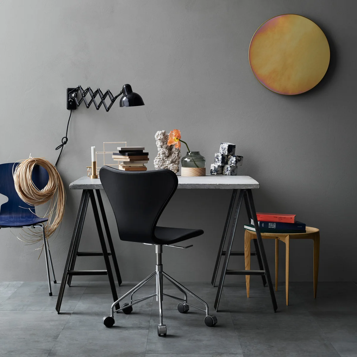 Der Serie 7 Bürostuhl von Fritz Hansen überzeugt durch seine ikonische Sitzschale und das Fünfstern Untergestell mit Rollen. So wird der zeitlose Klassiker zum praktischen Bürostuhl und bietet bei der Arbeit höchste Flexibilität.