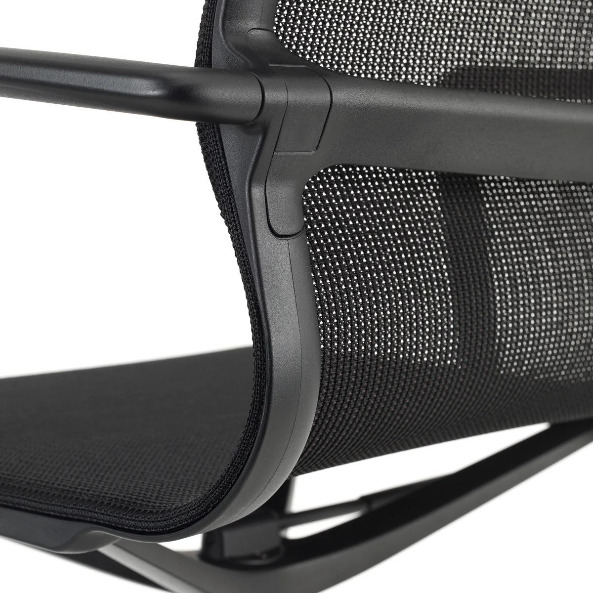 Meda vereint zudem drei Komponenten: eine flexible Rahmenkonstruktion, einen elastischen Bezug und eine stabilisierende Mechanikeinheit. In der Summe bilden diese drei Merkmale eine kongeniale Konstruktion, die in einem Zusammenspiel von flexiblen und festen Elementen die Möglichkeiten des dynamischen Sitzens neu auslotet.