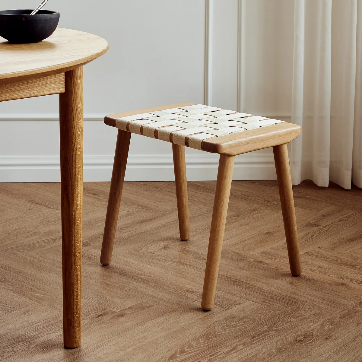 Der Seat Hocker von Andersen Furniture, entworfen von Allan Nøddebo, vereint natürliche Materialien mit klarer Formensprache. Gefertigt aus massiver Eiche und ausgestattet mit einer sorgfältig gewebten Sitzfläche aus Oeko-Tex-zertifizierter Baumwolle, bietet der Hocker hohen Komfort und eine zeitlose Ausstrahlung.