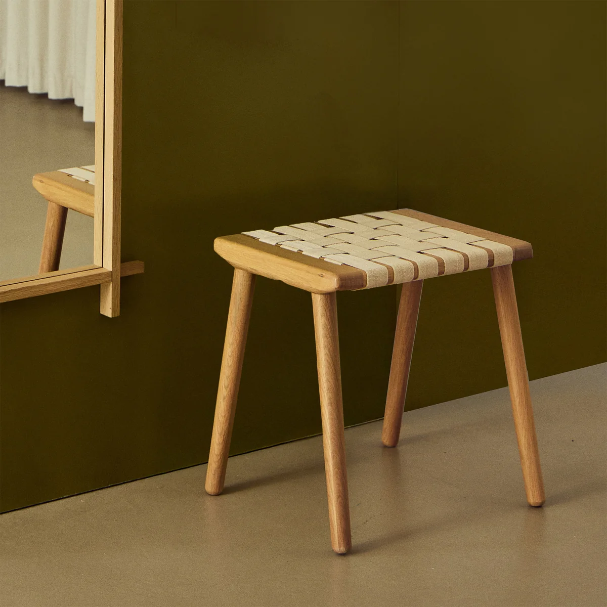 Die warme Eiche mit ihrer individuellen Maserung verleiht jedem Stück Charakter. Die weiß pigmentierte Lackierung unterstreicht die natürliche Schönheit des Holzes und macht den Hocker vielseitig einsetzbar – im Flur, Wohnzimmer oder Schlafzimmer. Mit seinen klaren Linien und der organischen Textur ist Seat Stool eine flexible Sitzlösung für verschiedenste Räume.