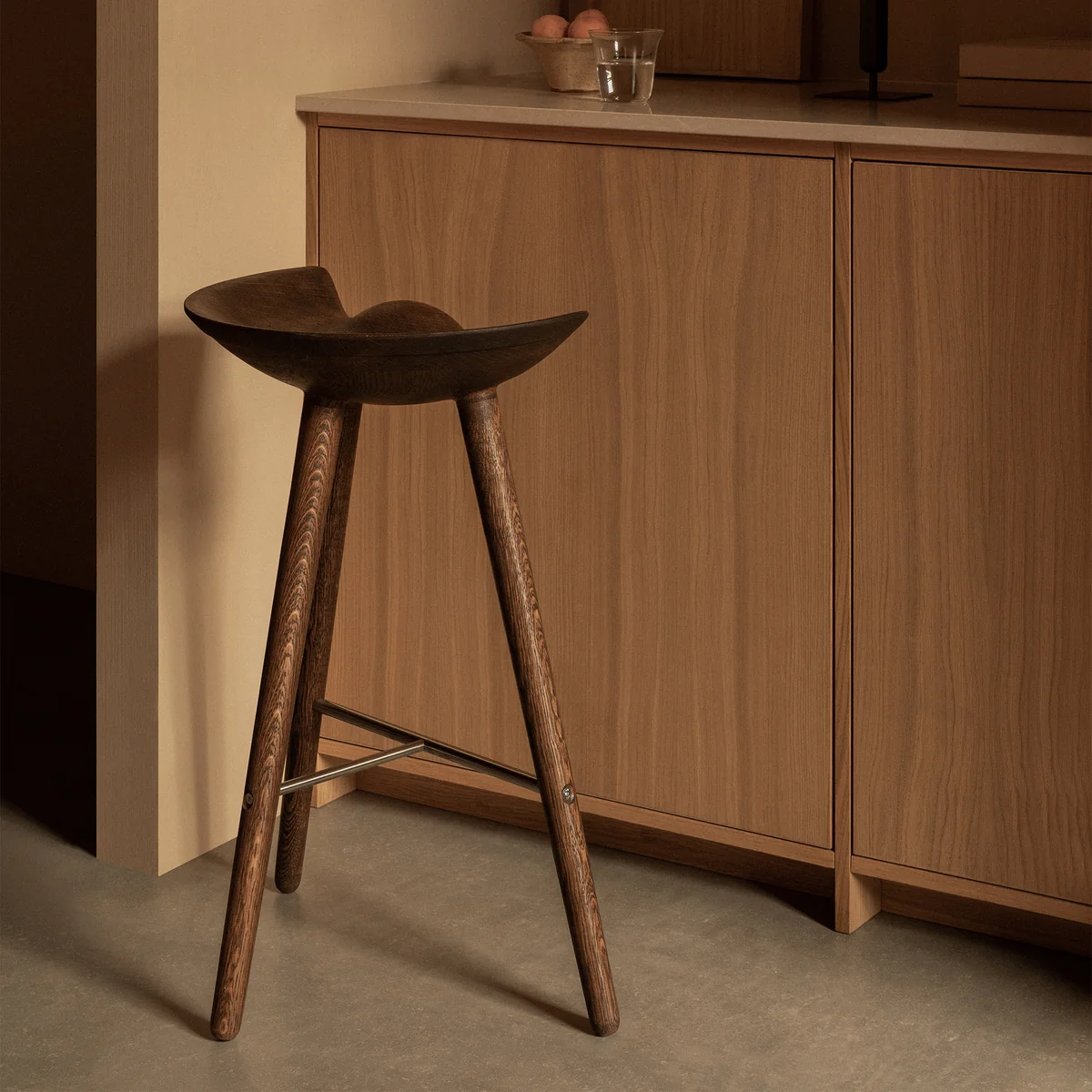 Audo stellt den ML42 aus Eichenholz her. Der Hocker wird in Dänemark in Handarbeit gefertigt, mit besonderem Fokus auf Qualität und Besinnung auf klassische skandinavische Handwerkskunst.