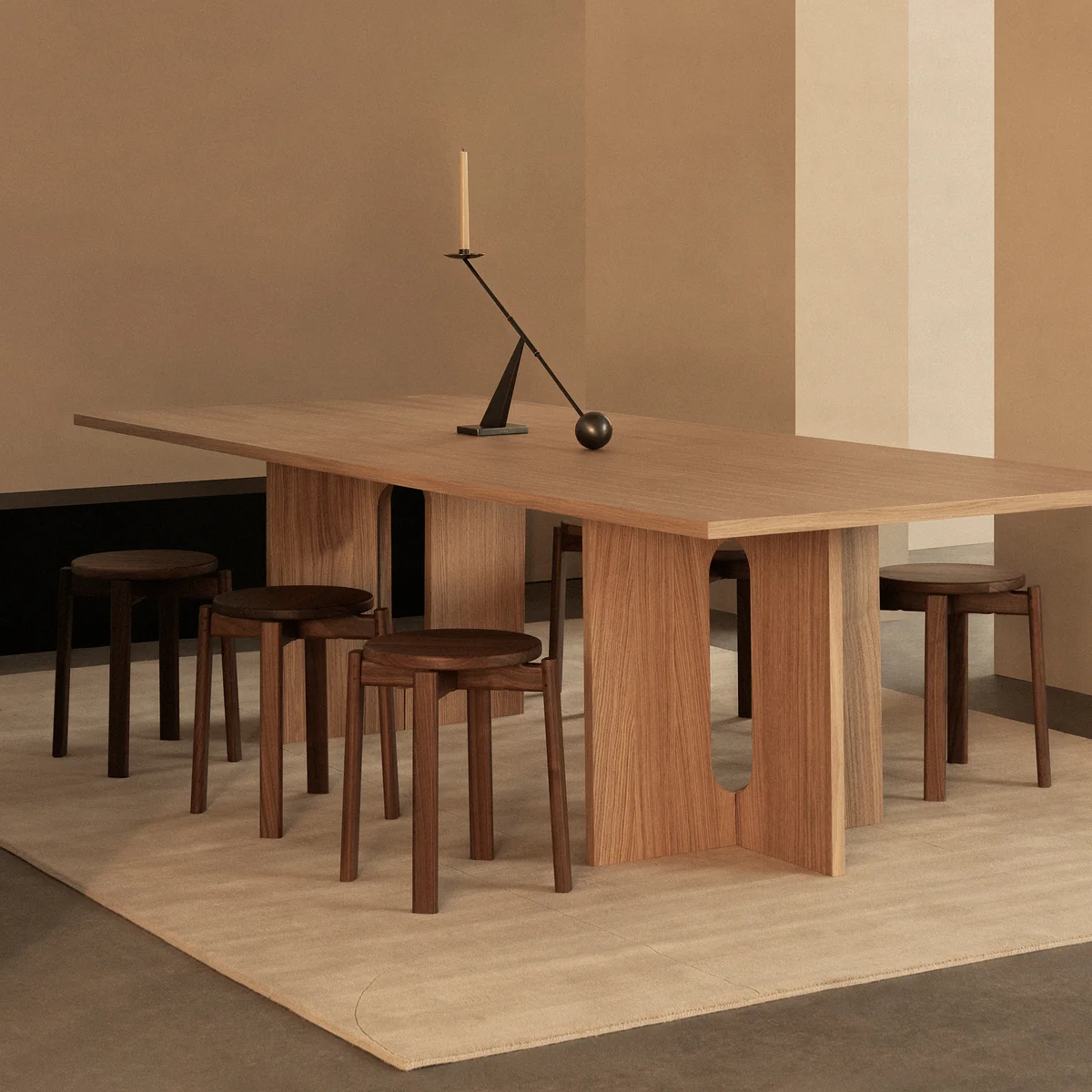Der hochfunktionale Passage Hocker von Audo hat einen warmen Ausdruck und eine organische Silhouette, die zum Anfassen einlädt. Seine Massivholzkonstruktion bringt ein Gefühl sanfter Gelassenheit in den Raum - egal, ob er als Sitzgelegenheit am Esstisch, als Ablage im Flur oder als Beistelltisch im Wohnzimmer verwendet wird. Wird er mal nicht benötigt, kann der Hocker platzsparend gestapelt werden.