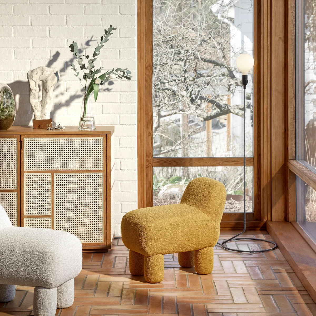 Was Kunst ist und was Design ist, ist kaum relevant, wenn es um Lulu von Färg & Blanche geht. Es mag einem Haustier ähneln, aber eher einem stilisierten, das darauf wartet, erkundet zu werden. Lulu ist sicherlich schön weich und stark: um gerade darauf zu sitzen wie auf einem Stuhl oder sich darauf auszustrecken wie auf einer Chaiselongue. Und für eine intime und verbindende Sitzgelegenheit. Lulu ist eine Skulptur, die auch praktisch ist. Figürlich und einfallsreich, bereit, jeden Innenraum zu beleben.
