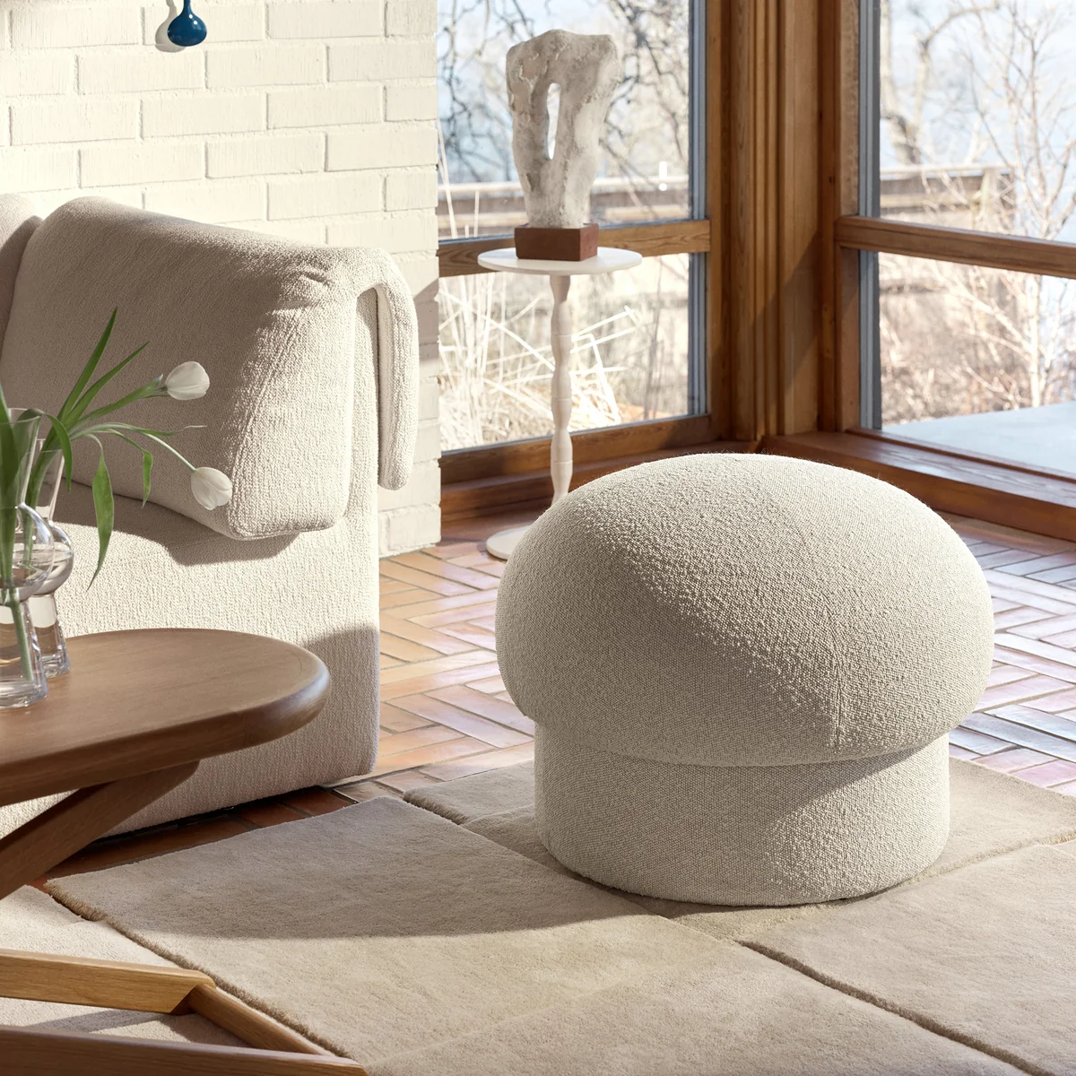 Uno ist keine Ausnahme in Bezug auf Sorgfalt und Liebe zum Detail. Eine fein gearbeitete Holzstruktur stützt ein Polstermaterial mit unterschiedlicher Dichte: fest, aber weich. Und es ist offensichtlich pragmatisch, wie einfach der Pouf bewegt werden kann und wie die eingelassene Basis das Aufstehen aus einer sitzenden Position erleichtert.