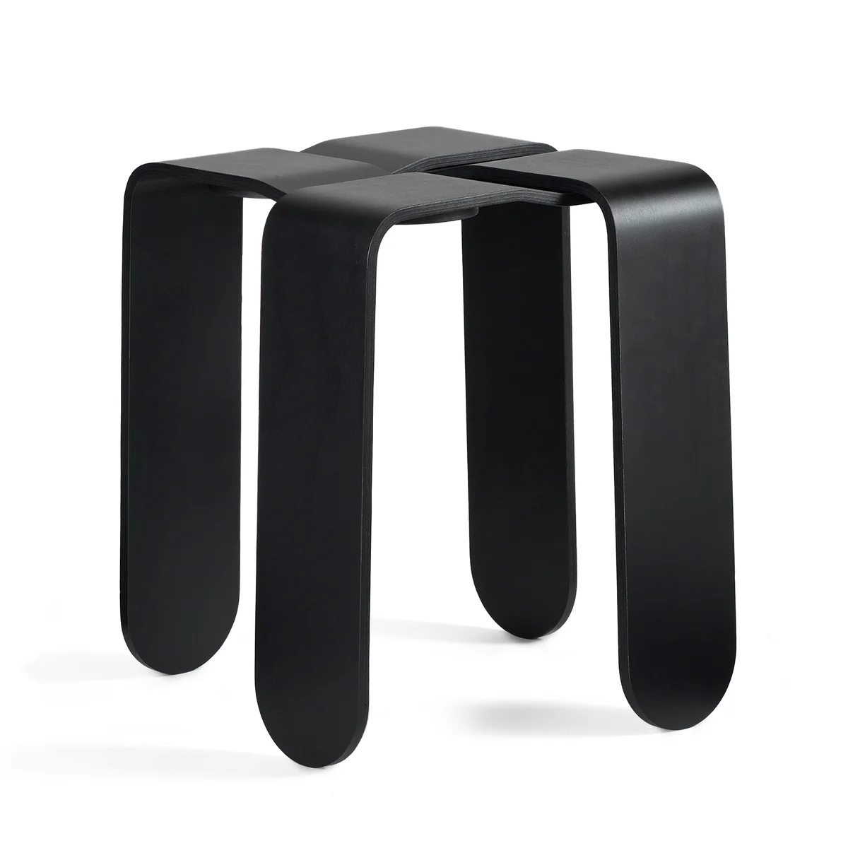 Der Hocker wird aus Buchenfurnier hergestellt und ist in verschiedenen Farben erhältlich.