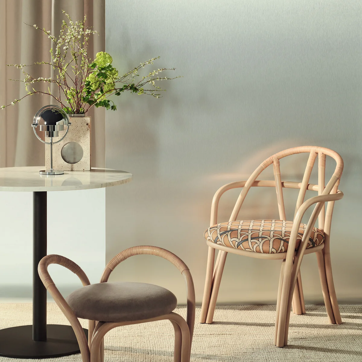 Skulpturales Design aus gebogenem Rattan