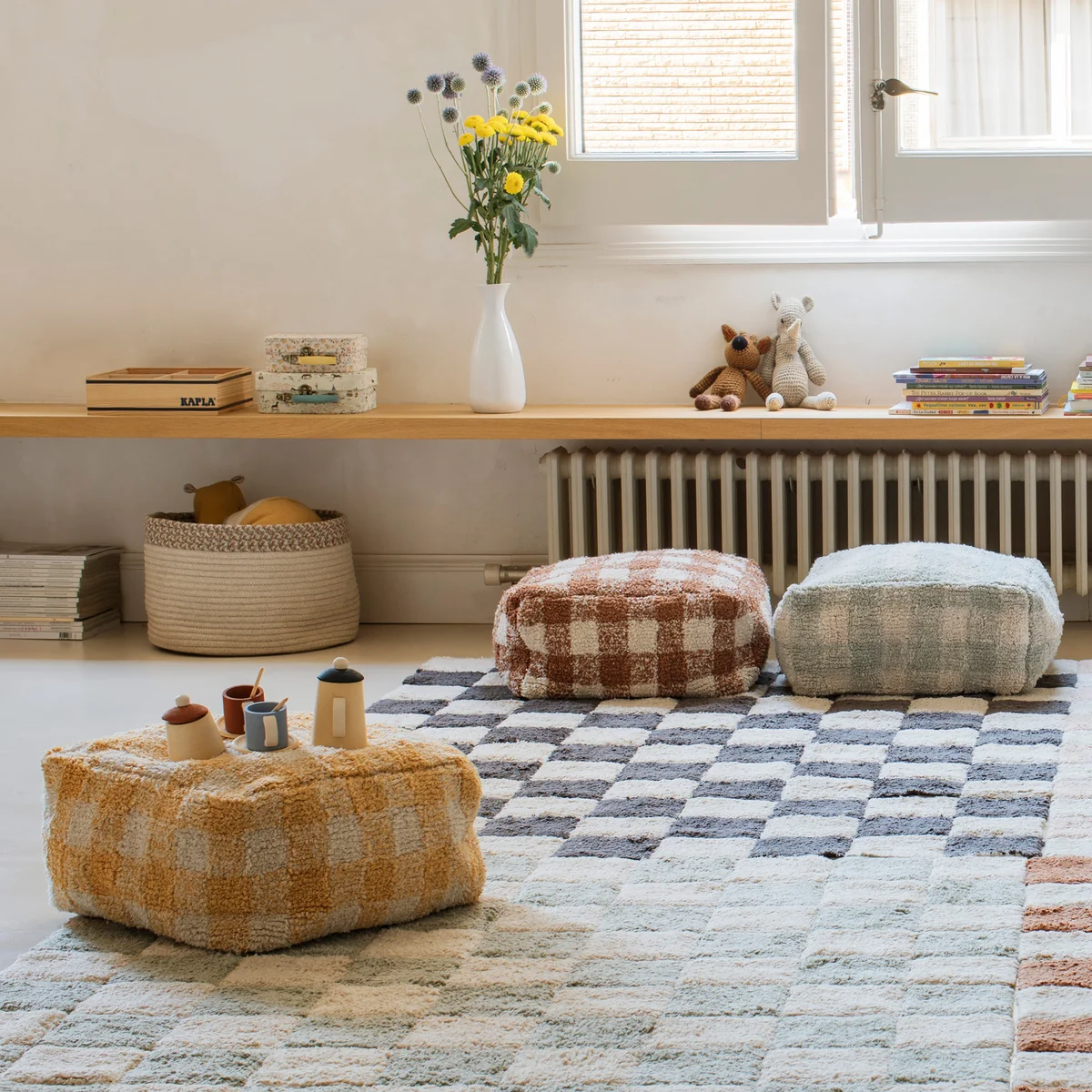 Der Vichy Pouf aus dem Hause Lorena Canals besticht mit seinem klassischen Vichy-Karo-Muster. Der tolle Plüschhocker kann je nach Bedarf platziert werden - ob im Wohnzimmer, Kinderzimmer oder sogar am Esstisch. Der Bezug wird aus Baumwolle gefertigt und mit Polystyrol-Perlen befüllt. Der Pouf in Vintage-Optik ist in einer Vielzahl von schönen Farben erhältlich.