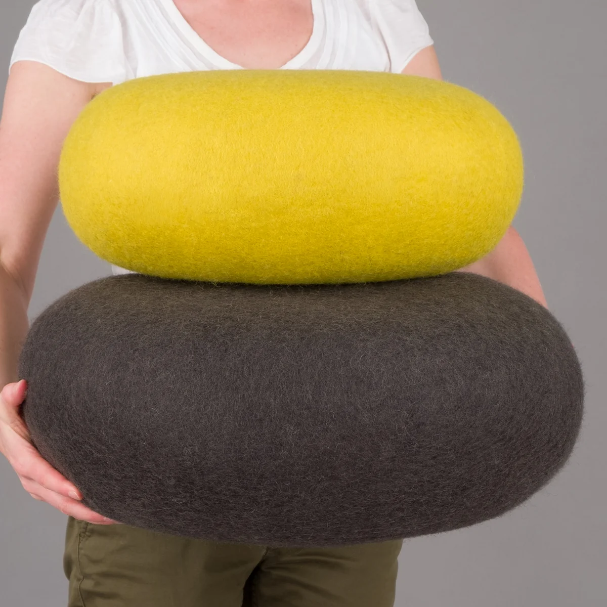 Bei den hochwertigen Wohnaccessoires handelt es sich um Naturprodukte aus reiner Schurwolle, ohne Polyester- oder Synthetikanteile, die in der von GoodWeave zertifizierten Manufaktur in Nepal hergestellt werden. Dank der Wollfilzfüllung sind die Poufs wasser- und schmutzabweisend und bieten eine optimale Festigkeit.