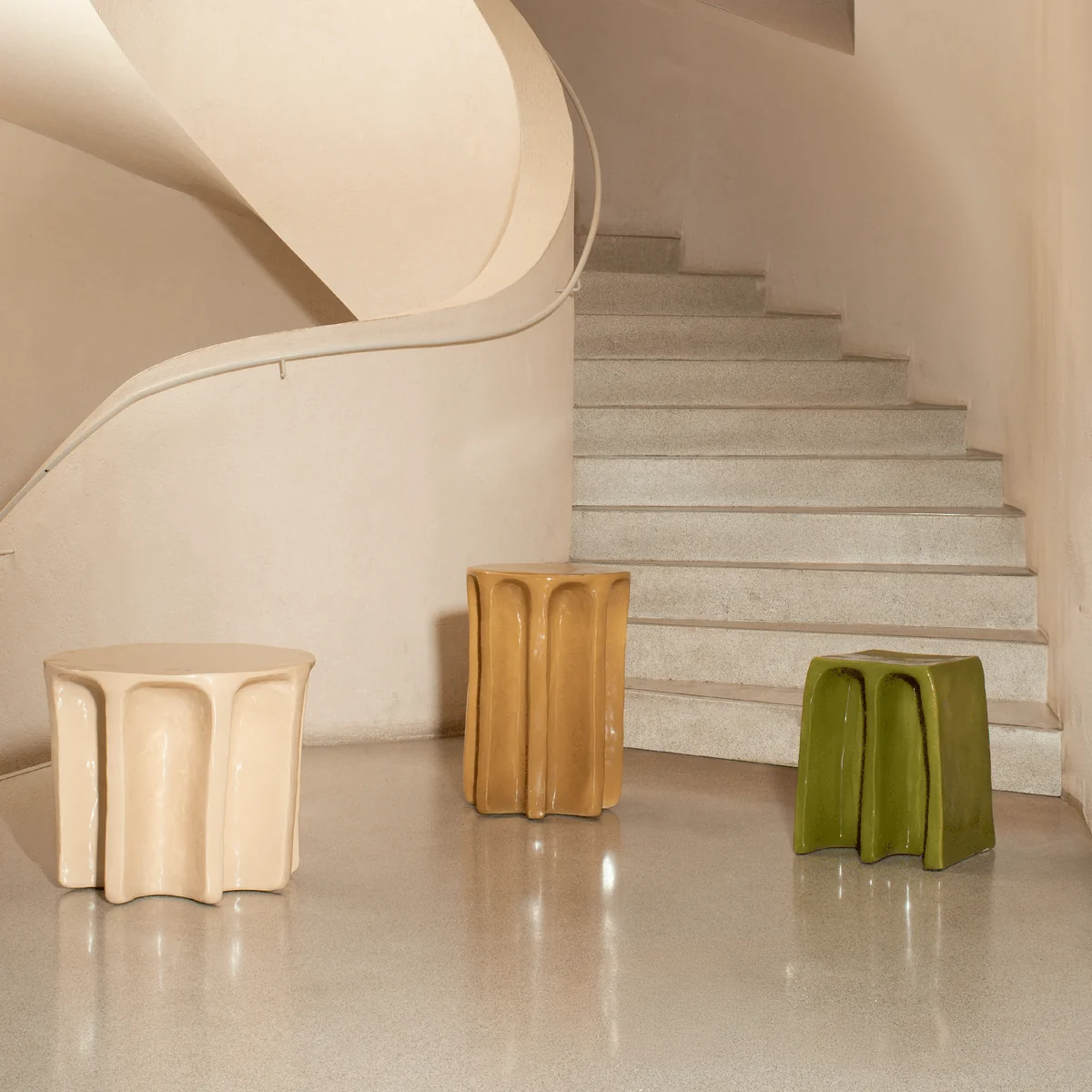 Der Chouchou Hocker / Beistelltisch, entworfen von Lorenzo Zanovello, verbindet skulpturale Eleganz mit spielerischem Design. Die Form erinnert an eine antike Säule – eine Hommage an die italienischen Wurzeln des Designers. Aus Keramik gefertigt und mit einer großzügigen, einzigartigen Farbglasur versehen, wird jede Oberfläche zu einem Unikat. Die unpolierte Struktur betont die handwerkliche Qualität und hebt sich von industrieller Einheitlichkeit ab. Der Chouchou Table ist in verschiedenen Varianten erhältlich, als hoher Beistelltisch oder als Couchtisch, in runder oder ovaler Form. Jedes Stück zeigt charakteristische Merkmale wie unregelmäßige Keramikstärken, Farbvariationen oder leichte Unebenheiten, die die traditionelle Handwerkskunst widerspiegeln.