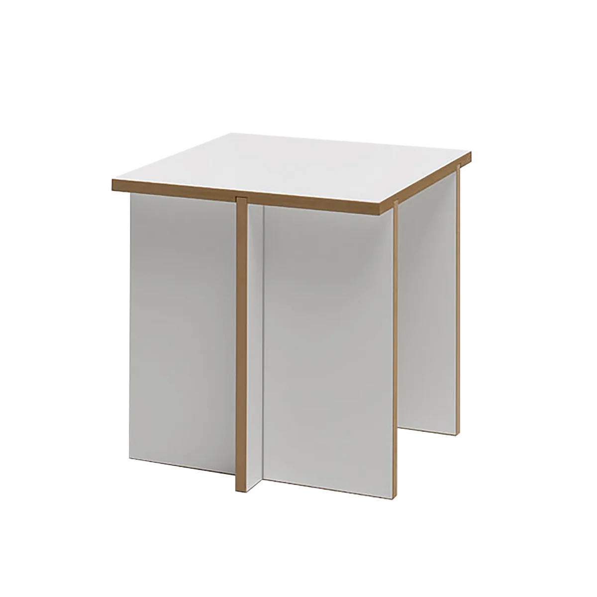 Der Hocker von Björn Hammer für Tojo besteht aus nur vier Einzelteilen. Für den Zusammenbau wird keinerlei Werkzeug benötigt. Der weiße Hocker kann als flexible Sitzmöglichkeit überall im Haus verwendet werden. Zusammengelegt passen alle Bestandteile in eine Kartonage. So lässt sich der Hocker aus beschichtetem MDF platzsparend verstauen und transportieren.