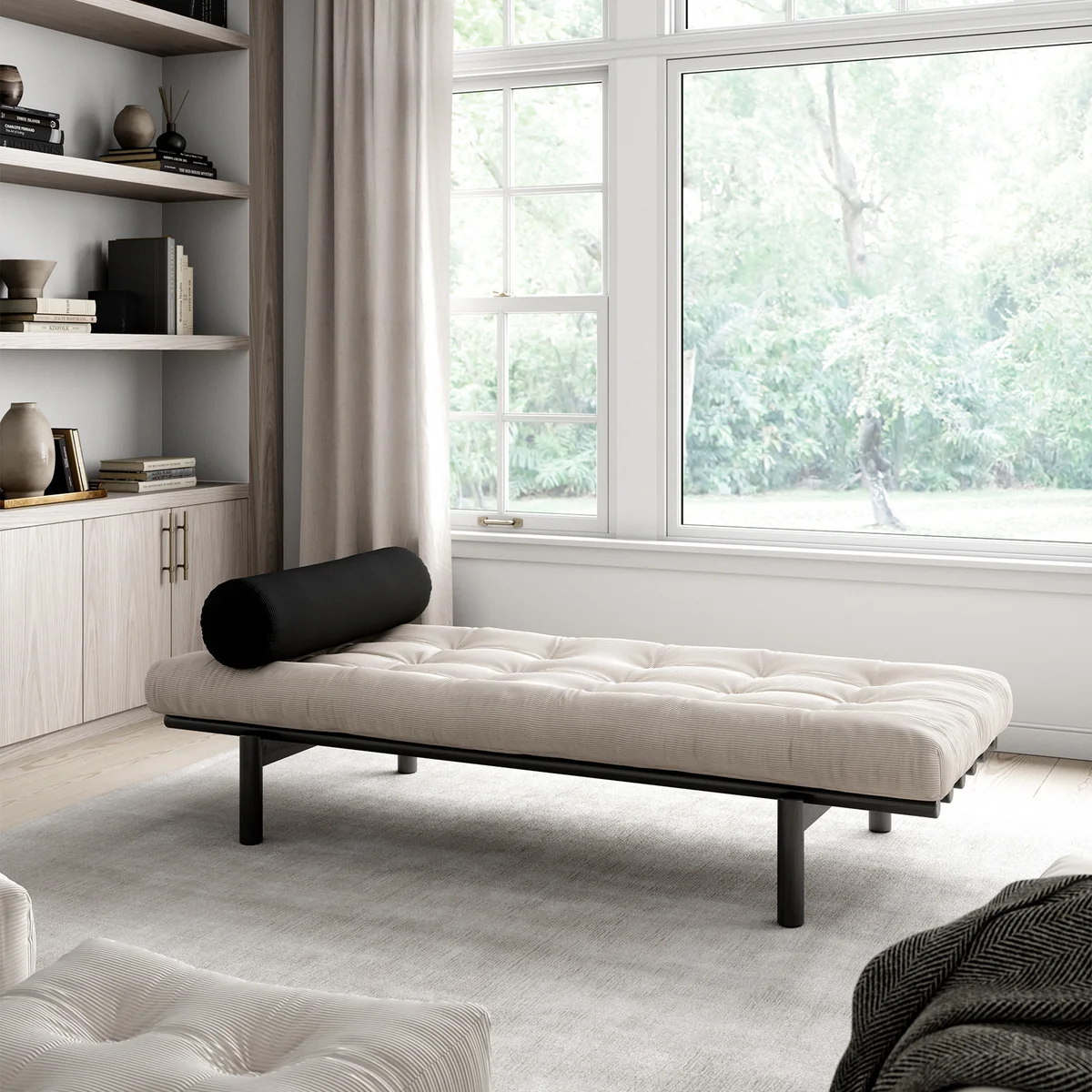 Das Next Daybed von Karup Design ist eine Kombination aus einem eleganten Kiefernholzrahmen mit einer weichen Cord-Futon-Matratze und einem runden Kissen auf der Oberseite, das jedem Zuhause einen modernen Look verleiht. Das Daybed kann als Raumteiler im Wohnzimmer, im Eingangsbereich, an der Wand, im Schlafzimmer oder für alles, was die Fantasie hergibt, dienen. Flexibel und gleichzeitig bequem geht das Möbelstück so mit der Zeit und ist besonders modern.