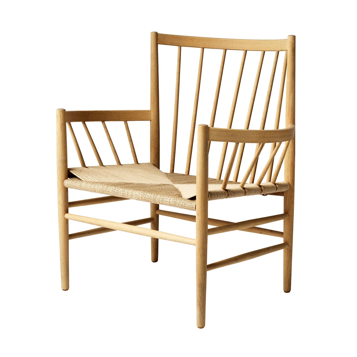 Gefertigt ist der J82 Lounge Stuhl aus massivem Holz, das aus europäischen Wäldern stammt. Die rund geschliffenen Streben in Kombinationen mit der Sitzfläche aus Naturgeflecht sorgen für eine luftig-leichte Erscheinung des Stuhls, der sich so in jedes Wohnambiente integriert. Der Stuhl mit den rund geformten Armlehnen lädt zum Lesen und Entspannen ein.