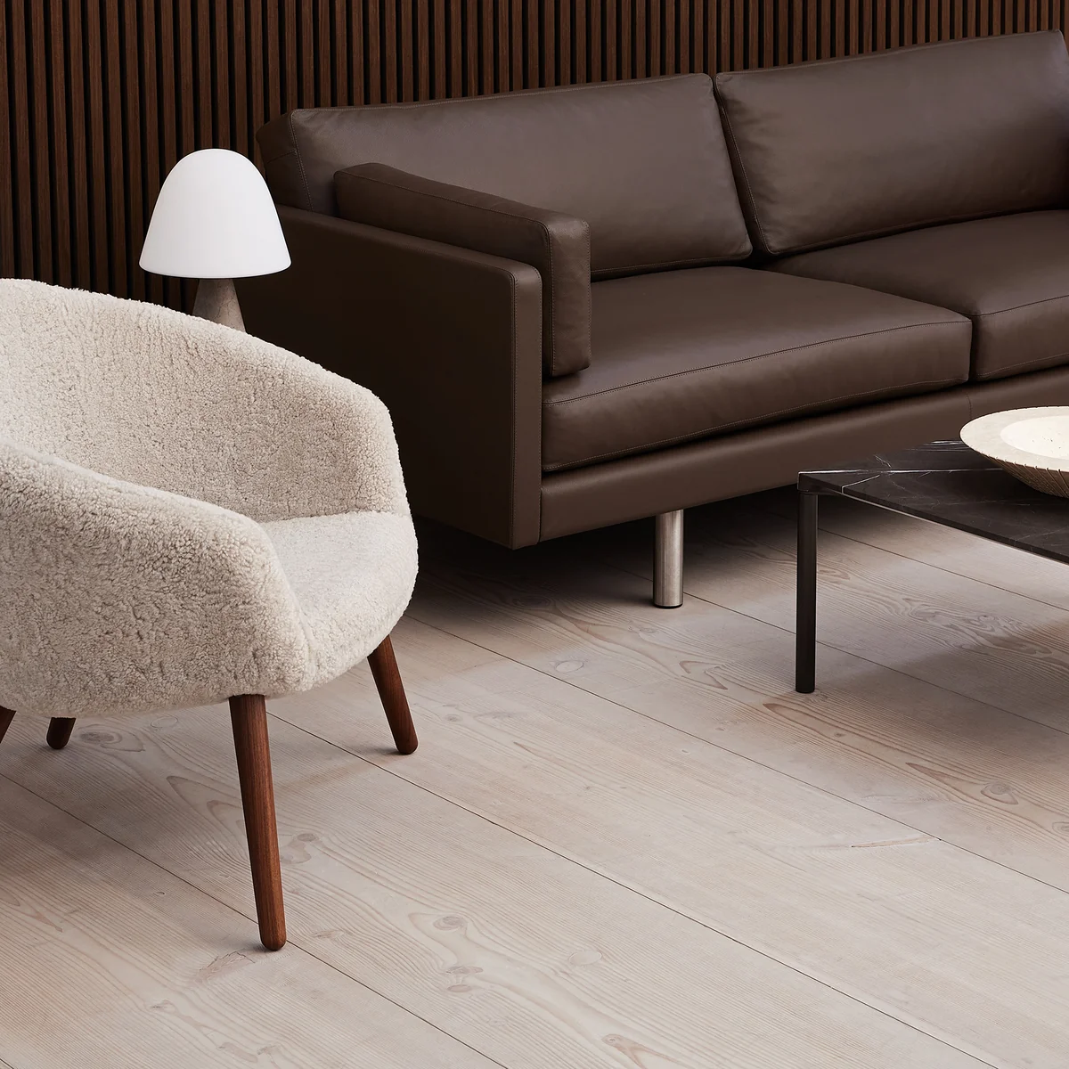 Der Ditzel Lounge Chair von Nanna Ditzel für den Hersteller Fredericia sorgt im wahrsten Sinne des Wortes für eine komfortable Umarmung. Die einladende, organische Form des Stuhls schmiegt sich um den Körper der sitzenden Person herum. Ditzel war in den späten 1980ern Hausdesignerin bei Fredericia. Sie war bekannt ihre Rebellion und ihre Unerschrockenheit. Als sie und ihr Mann Jørgen Ditzel 1953 den Ditzel Lounge Chair entwarfen, lehnten sie die herkömmliche Vorstellung, dass ein Stuhl aufrecht und schwer zu sitzen sein muss ab.