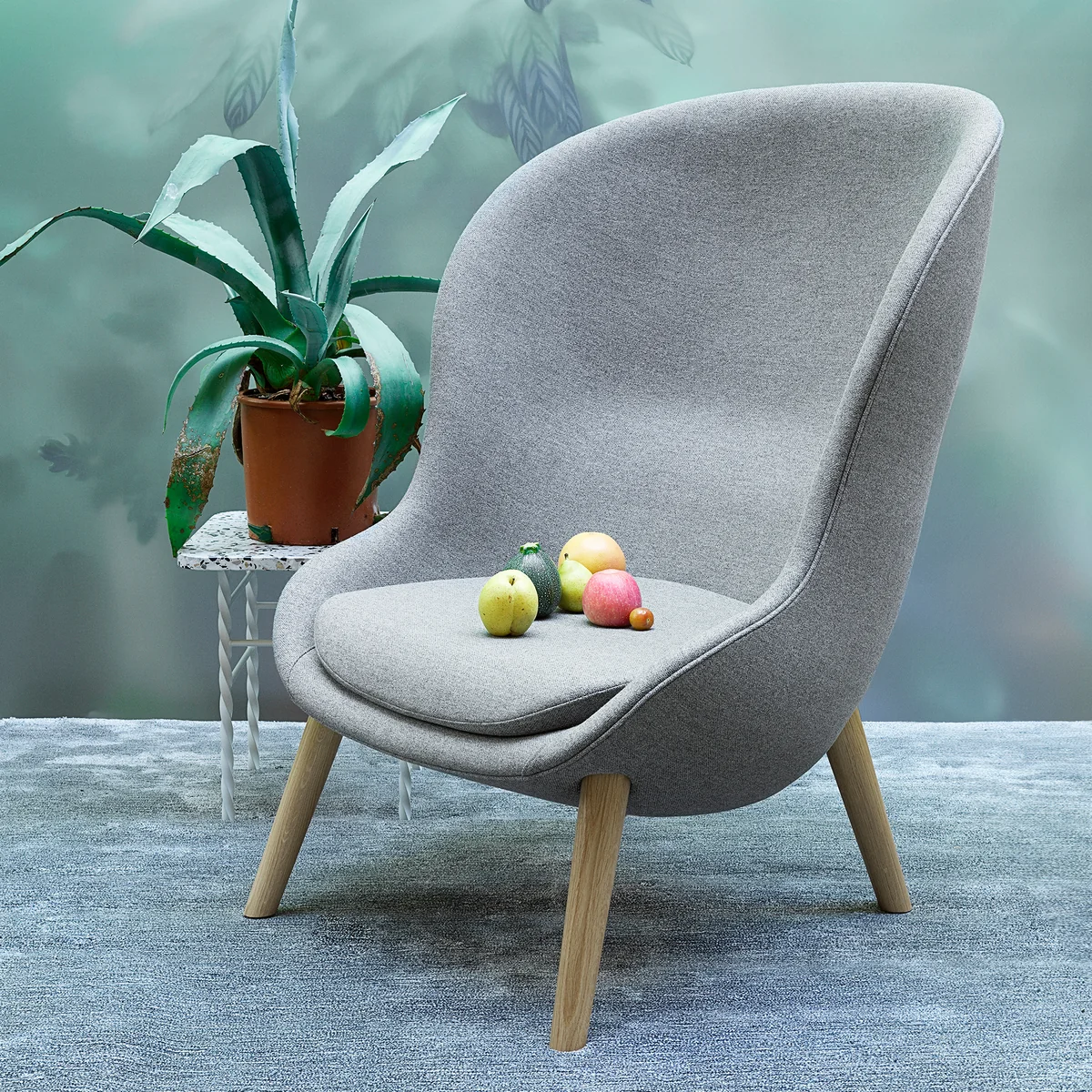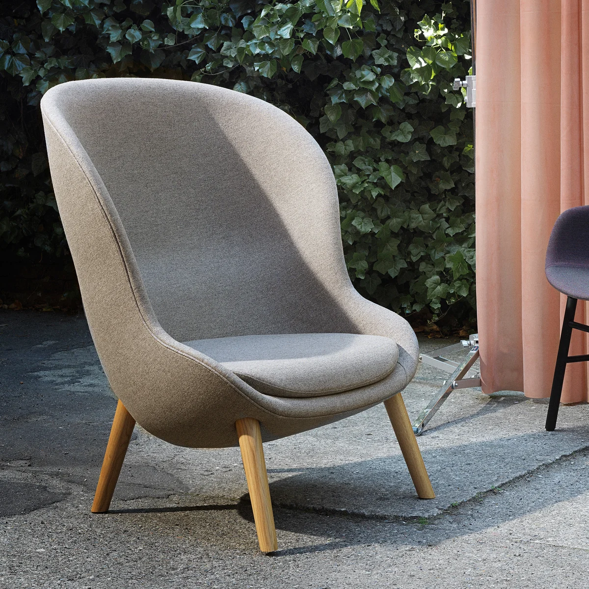 Der Hyg Lounge-Sessel von Normann Copenhagen wurde von Simon Legald entworfen und ist nach dem dänischen Lebensgefühl Hygge benannt. Nicht zu übersetzten und schwer zu definieren, geht es bei Hygge darum, es sich gut gehen zu lassen. Kerzenschein, ein heißer Tee und eine kuschelige Decke an kalten Tagen aber auch das gemütliche Beisammensein an einer lauen Sommernacht im eigenen Garten strahlen das Hygge Gefühl der Dänen aus, was Legald in seiner Hyg Serie unterbringen wollte. Mit Hyg hat Simon Legald eine Serie entworfen, die wie eine warme, herzliche Umarmung wirkt und bei der sanfte Linien und umhüllende Konturen einen intimen und gemütlichen Raum schaffen.