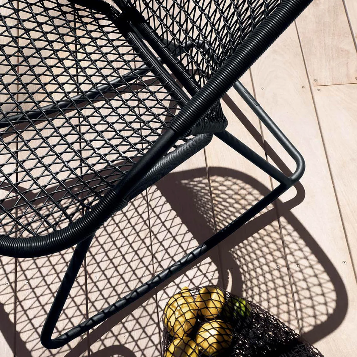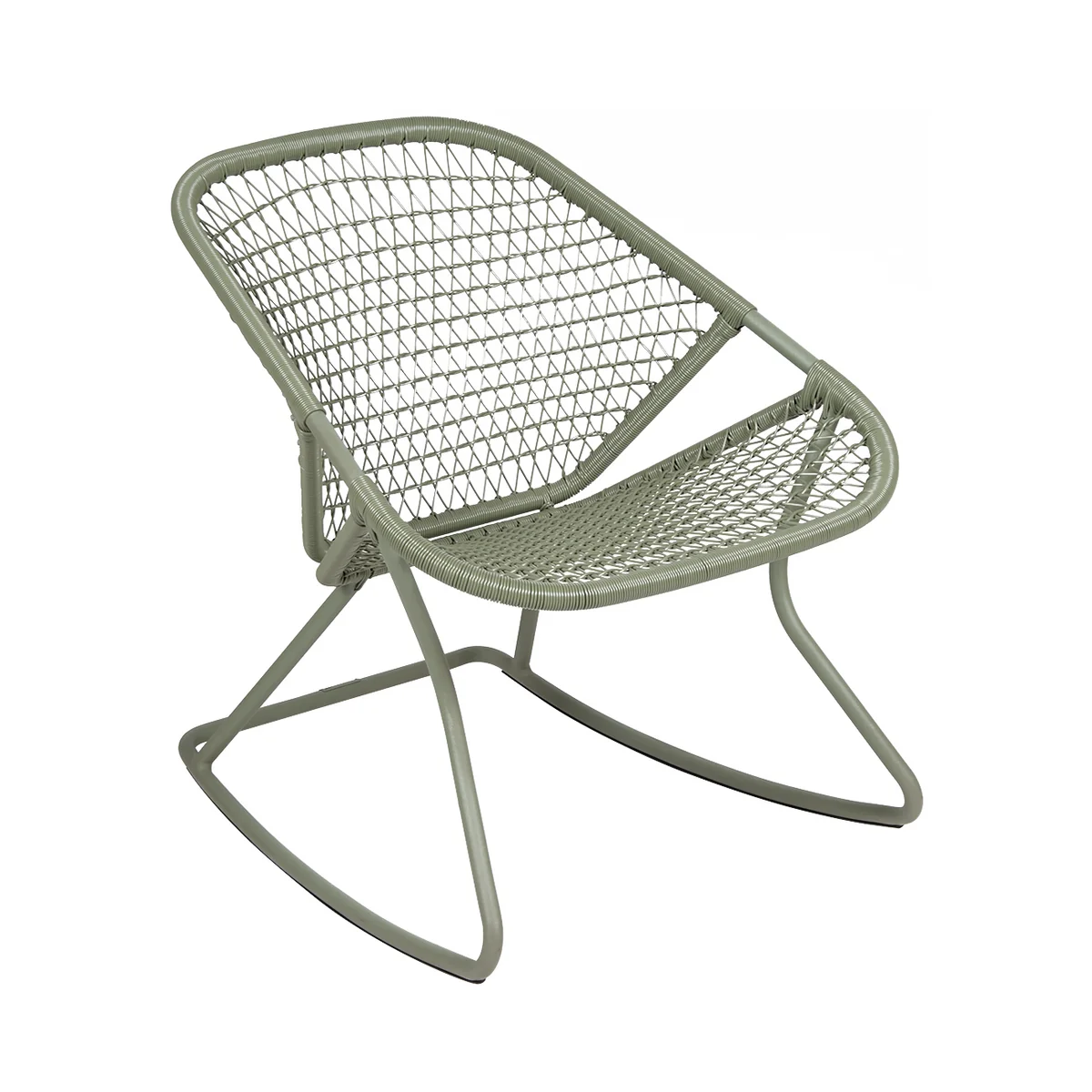 Das Gestell des Stuhls wird aus Aluminiumrohr, die Sitzfläche aus einem Geflecht aus synthetischen Outdoor-Fasern aus Polyethylen hergestellt. Beides verleihen dem Stuhl eine überaus hohe Haltbarkeit. Der Schaukelstuhl kann sowohl im Indoor als auch im Outdoor-Bereich genutzt werden.