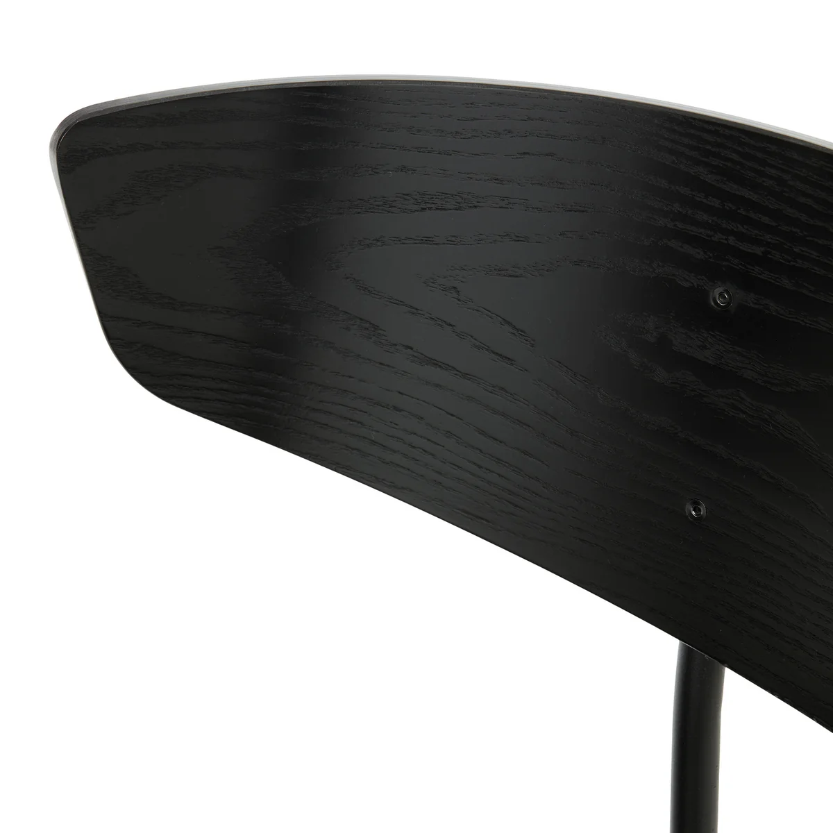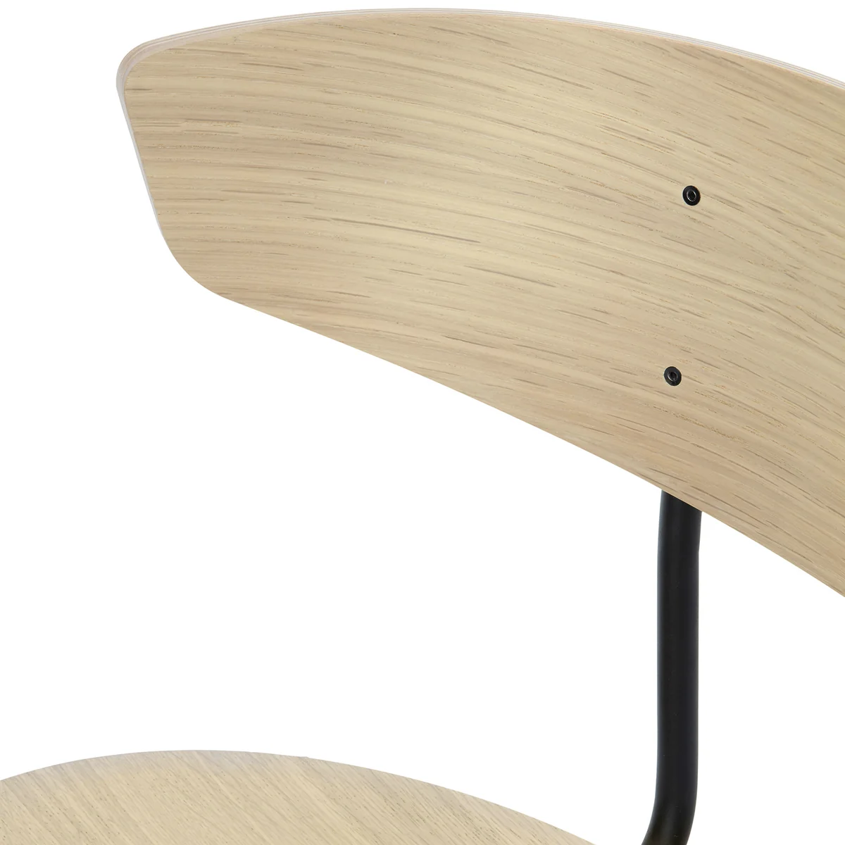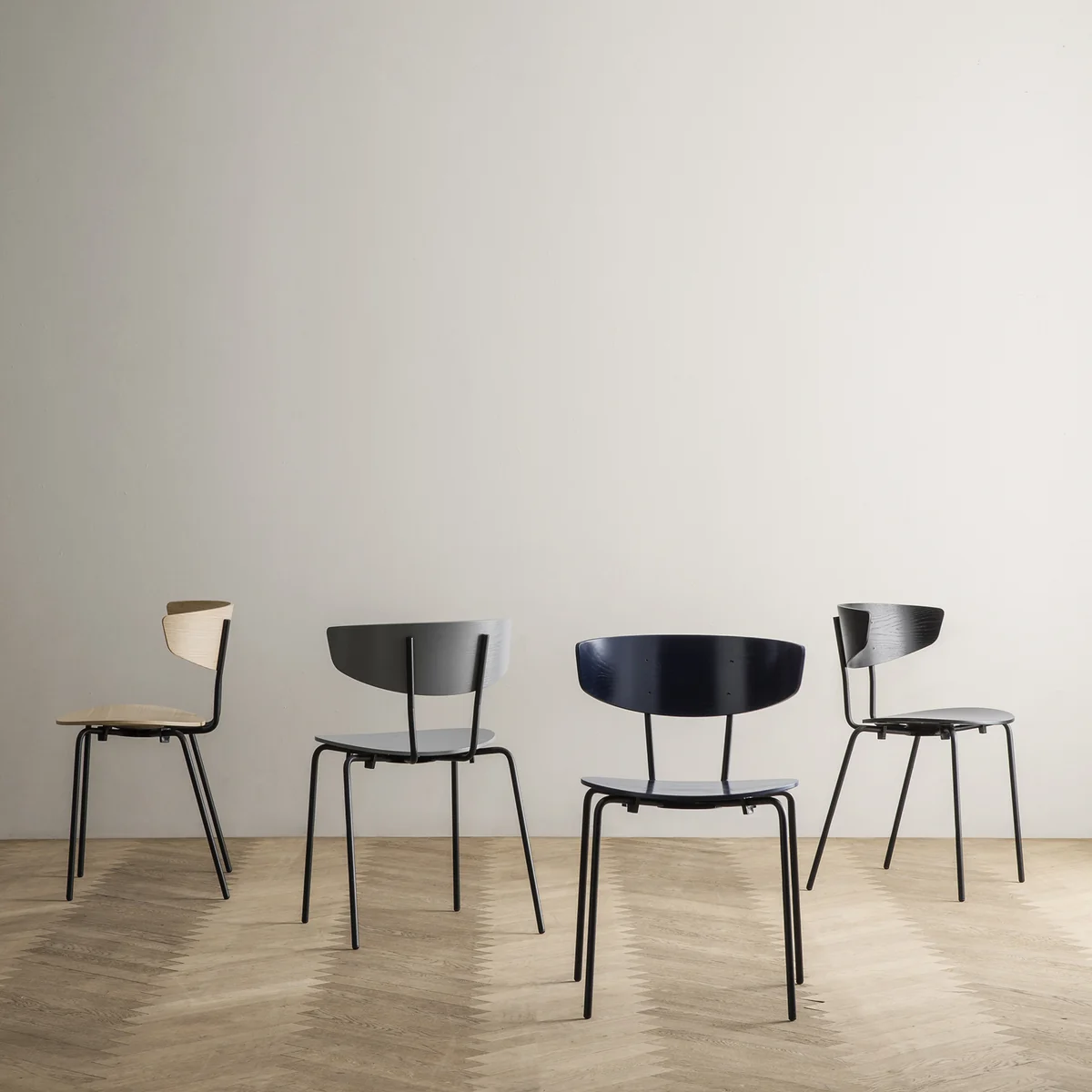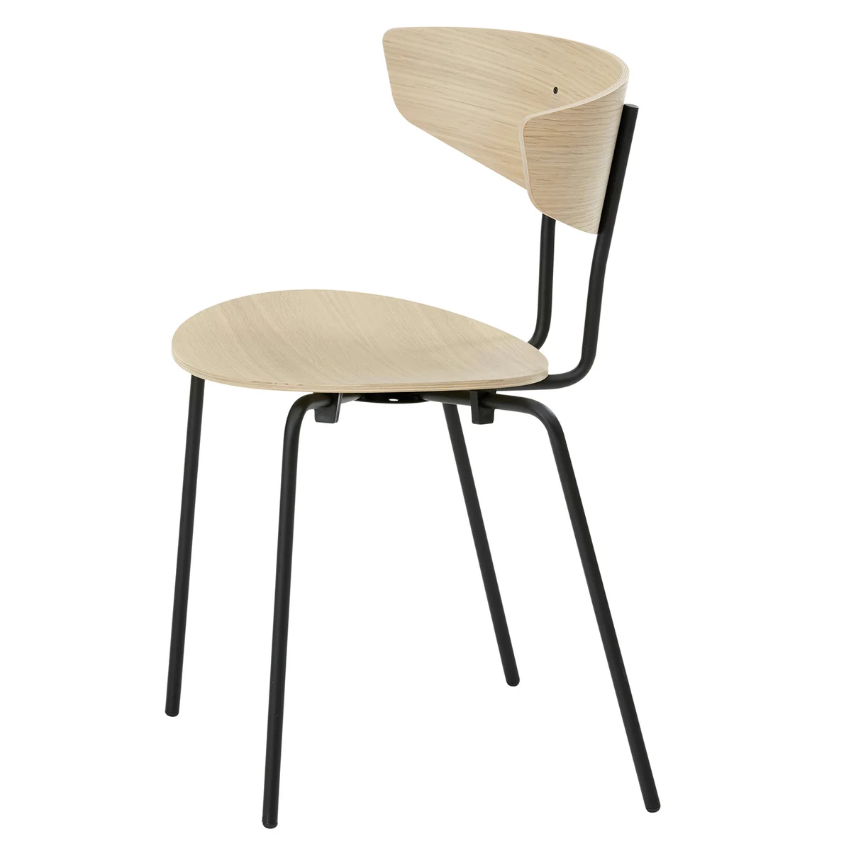 Der stapelbare Stuhl von Herman Studio für Ferm Living hat einen Metallrahmen. Der Sitz und die Rückenlehne sind aus verschiedenem lackierten oder natürlichen Holz erhältlich.