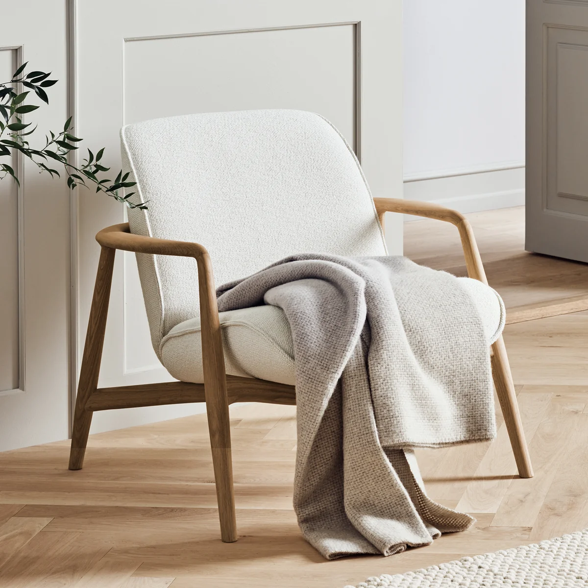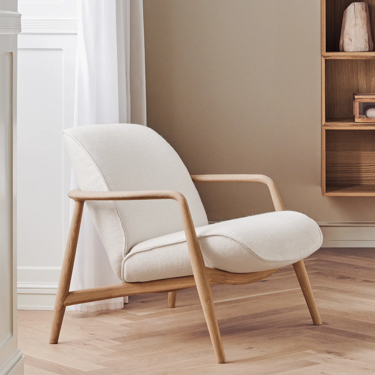 Der Bowie Sessel von Bolia - entwickelt vom italienischen Designstudio Skrivo und inspiriert vom skandinavischen Design aus der Mitte des letzten Jahrhunderts, präsentiert sich dieser elegante Sessel. Er zeichnet sich durch einen luxuriösen Eichenrahmen aus, der nahtlos von den Beinen in die Armlehnen übergeht und den Sitz behutsam umschließt. Dieser Sessel wird in Handarbeit gefertigt, wobei eine Kombination aus traditionellen und modernen Holzbearbeitungstechniken verwendet wird, um dem Design eine zeitgemäße Ästhetik zu verleihen. Die Sitzfläche und die Rückenlehne sind mit Stoffen, die die STANDARD 100 by OEKO-TEX® Zertifizierung tragen bezogen.
