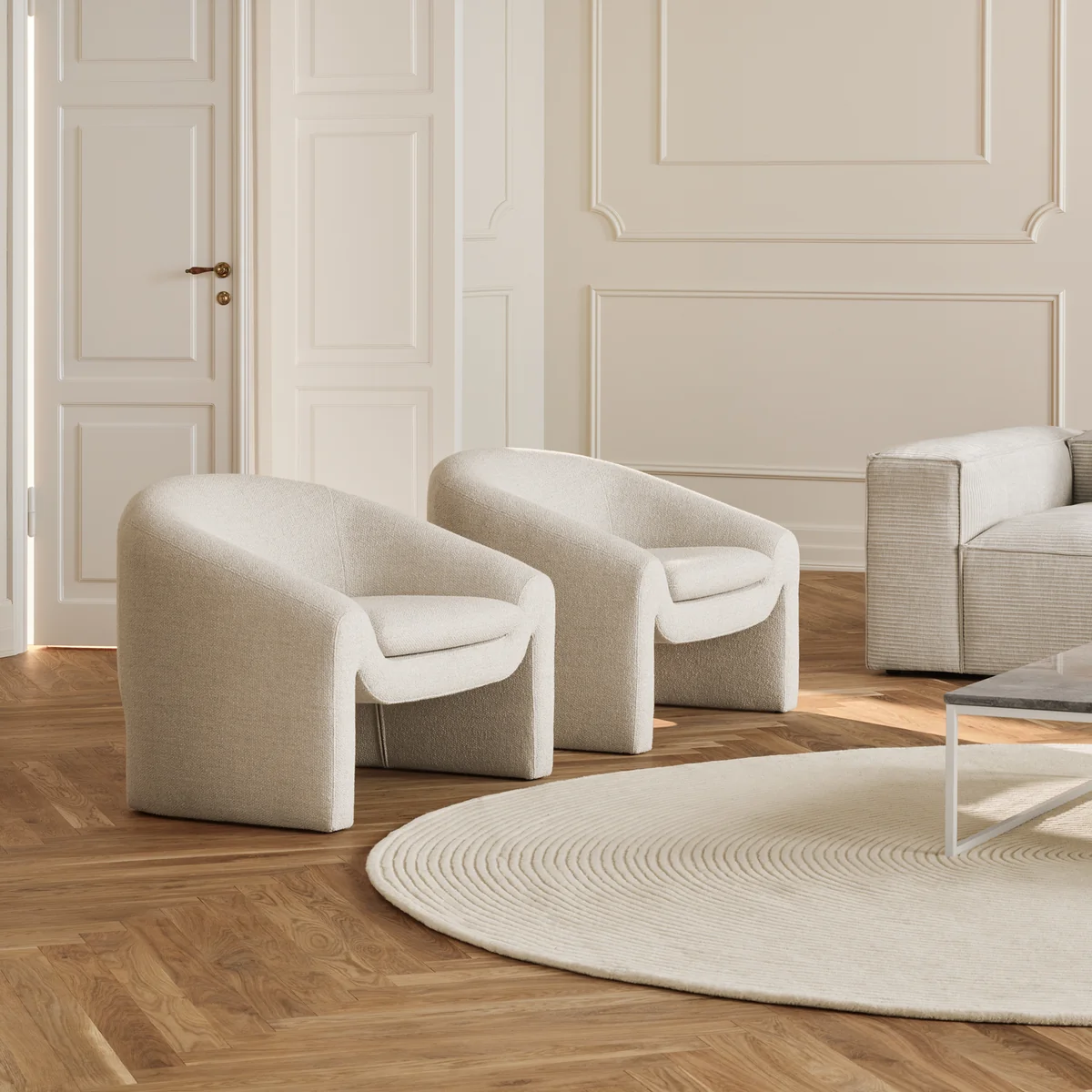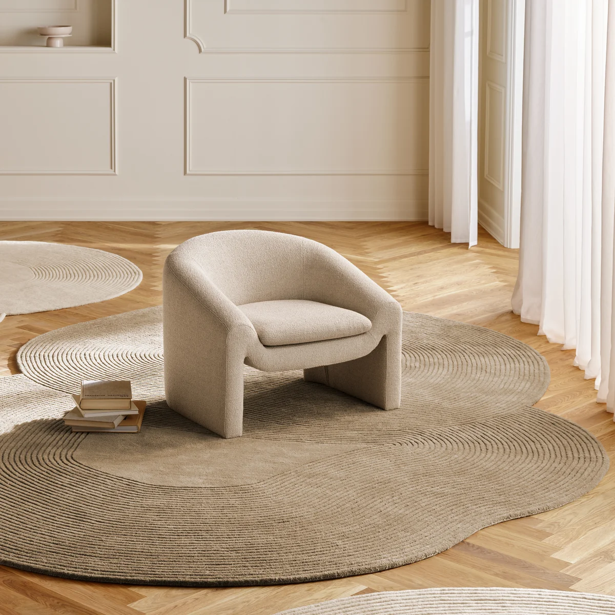 Der Mielo Sessel von Charlotte Høncke für Bolia. Mit seinem skulpturalen Lounge-Look und den zeitlosen, organischen Formen wurde dieses Möbelstück mit dem Schwerpunkt auf Komfort, Charakter und handgefertigter europäischer Qualität entworfen. Seine offene Form lädt zum Zurücklehnen und Entspannen ein, während das wendbare Sitzkissen für Langlebigkeit sorgt. Mielo ist aus jedem Blickwinkel atemberaubend, wertet jedes moderne Interieur auf und zieht die Aufmerksamkeit der Gäste auf sich.