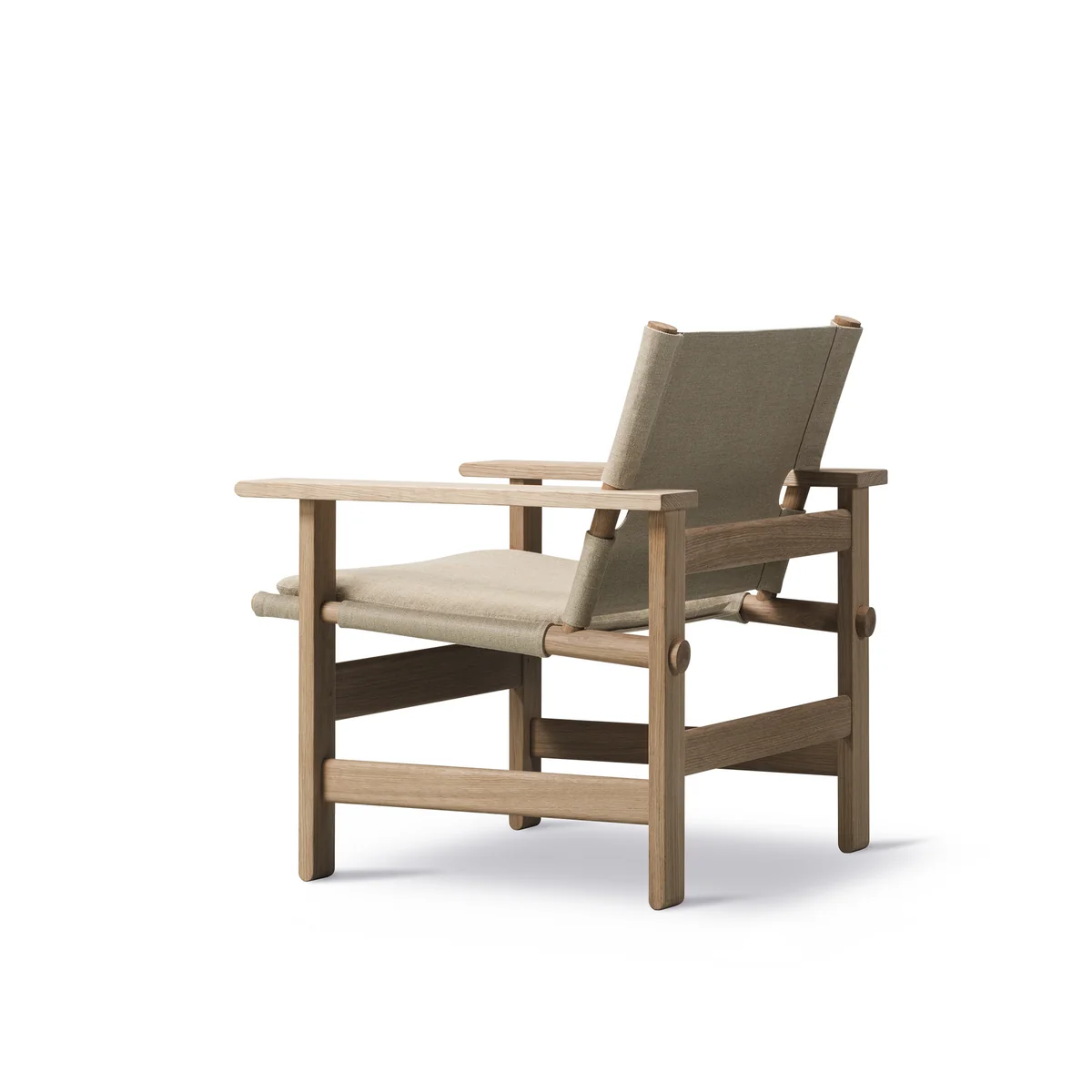 Mogensen war mit seinem Sessel bereits seiner Zeit voraus, simples Design als Antwort auf eine komplexe Umwelt. Canvas ist ein zeitloses Möbelstück, welcher klare Bezüge zu traditionellen Safaristühlen hat. Durch seine einfache, schlanke Designsprache passt in jeder Art von Interieur. Canvas von Ferdericia wird Eichenholz, der Bezug aus Leinen Canvas gefertigt.