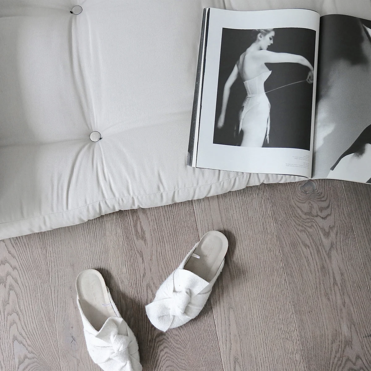 Der Bezug des Futonsessels wird aus 50% Leinen und 50% Baumwolle hergestellt und ist in verschiedenen Farben erhältlich.