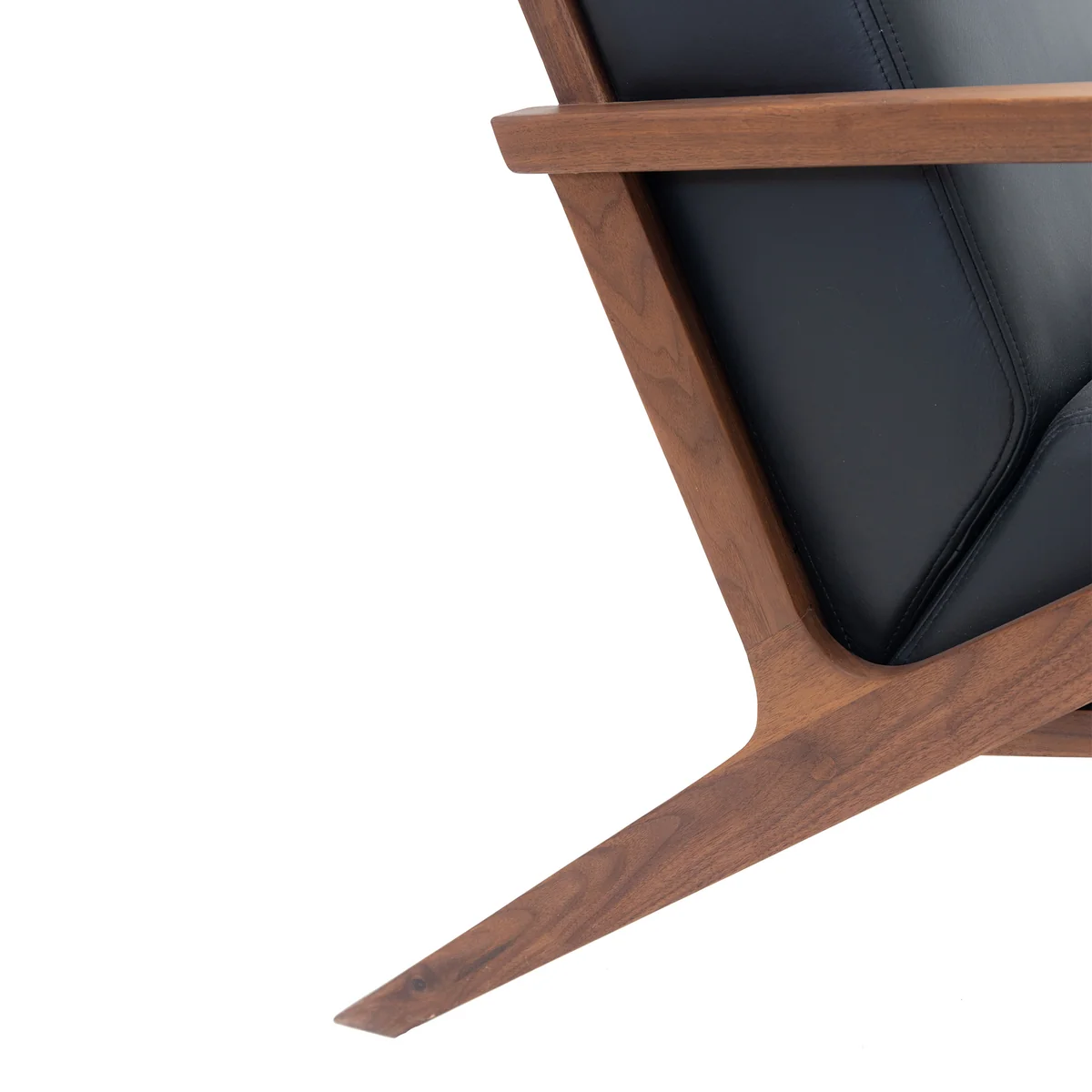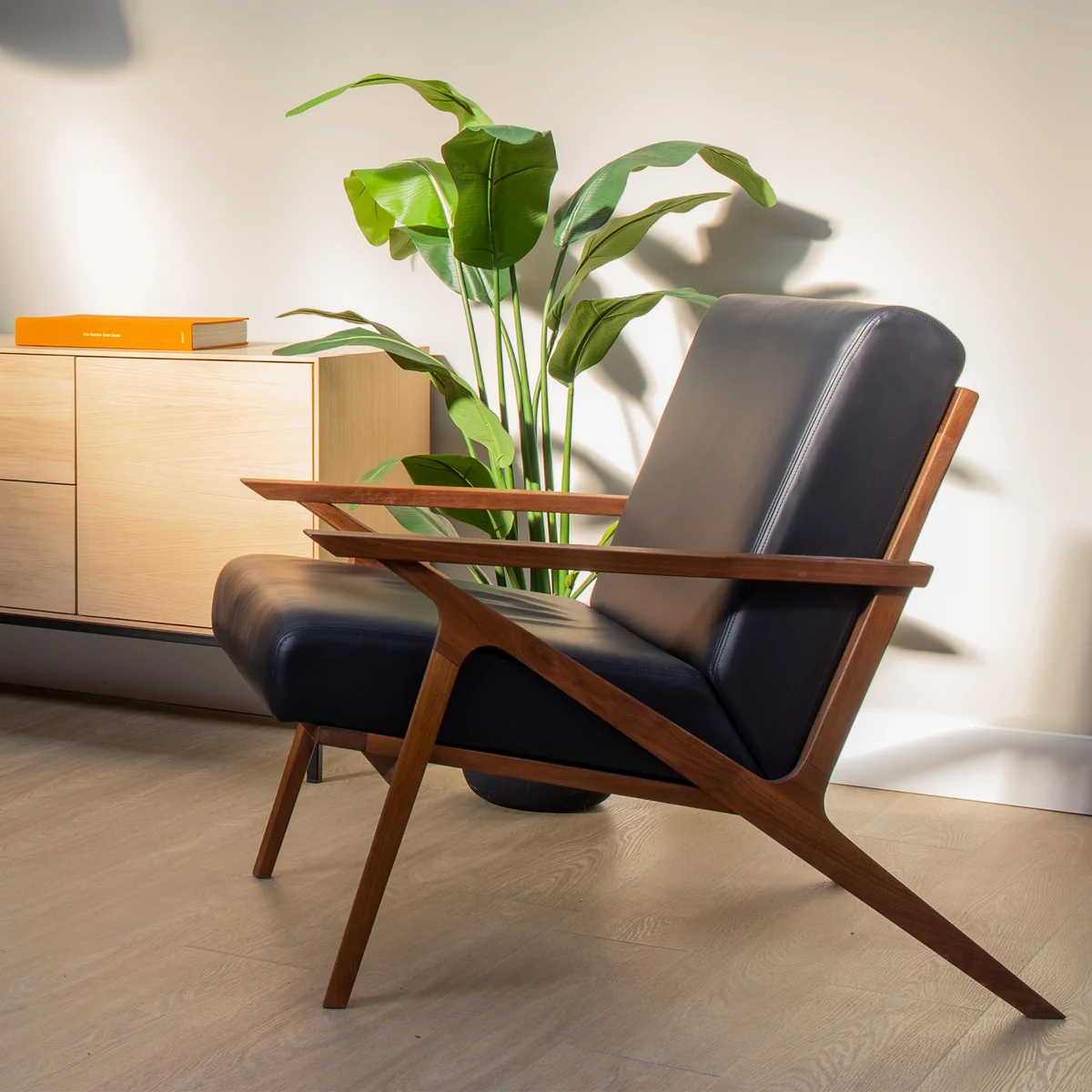 Der Jesper Lounge Stuhl von Studio Zondag aus Walnuss und schwarzem Leder verkörpert zeitlose Eleganz und erstklassiges Handwerk. Dieses Meisterwerk des Möbeldesigns fasziniert durch seine Kombination von natürlicher Schönheit und raffinierter Funktionalität. Das Gestell aus edlem Walnussholz verleiht dem Stuhl eine warme, organische Ausstrahlung, während das schwarze Lederpolster einen Hauch von Luxus und Komfort hinzufügt. Die ergonomische Form des Stuhls sorgt für unübertroffenen Sitzkomfort, und seine schlichte, minimalistische Ästhetik fügt sich nahtlos in jede Einrichtung ein. Der Jesper Lounge Stuhl ist nicht nur ein Sitzmöbel, sondern ein Kunstwerk, das den Raum aufwertet und gleichzeitig den höchsten Ansprüchen an Stil und Qualität gerecht wird. Dieses Möbelstück ist eine Investition in zeitlose Schönheit und einen Lebensstil von höchstem Anspruch.