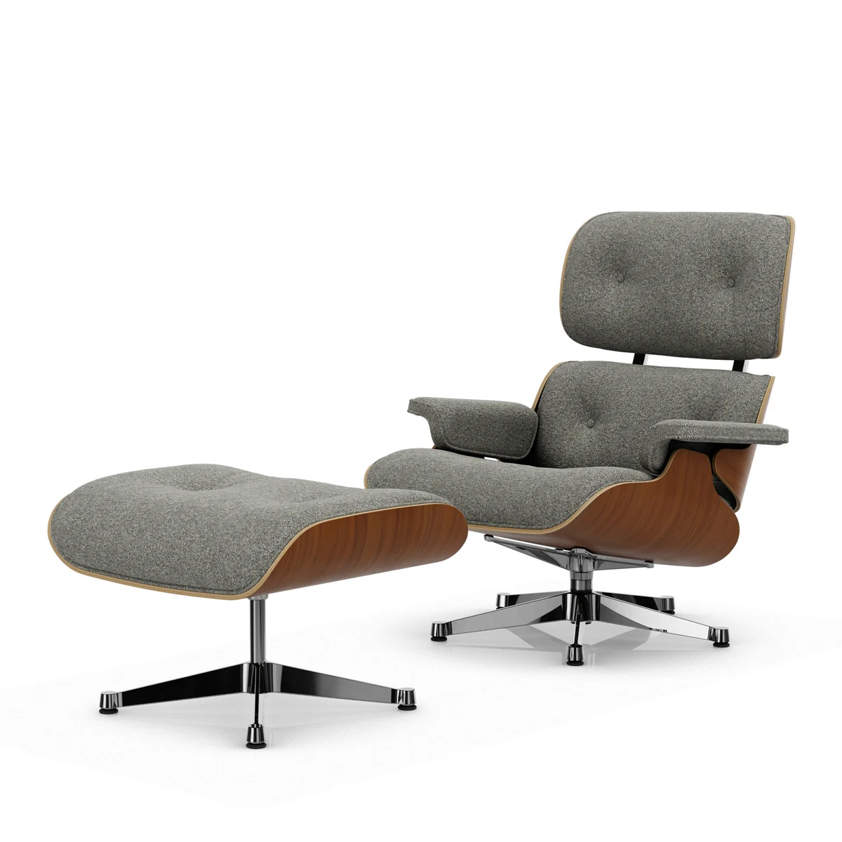 Das Untergestell des Eames Lounge Chair ist, wahlweise als verchromte, oder als polierte Version erhältlich. In unterschiedlichen Kombinationsmöglichkeiten äußert sich ein ganz individueller Charakter.