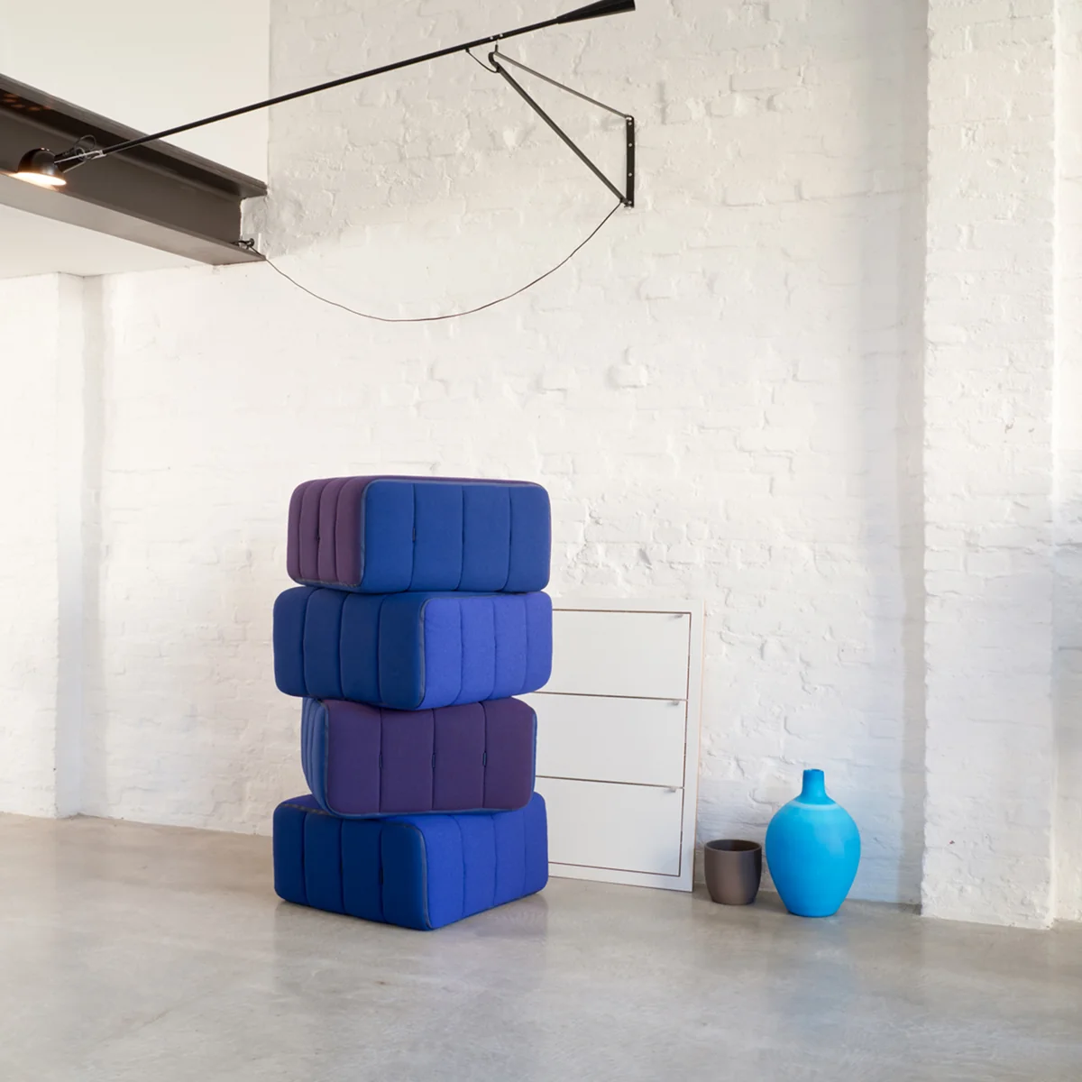 Curt ist ein einfaches und flexibles Sofamodulsystem von Ambivalenz. Das einzelne Sofamodul ist ein Pouf, der in verschiedenen Farben erhältlich ist. Dieser kann einzeln als Pouf verwendet, oder aber mithilfe eines Verbindungssystem zusammen mit weiteren Curt Poufs zu einem Sofa verbunden werden. Mit Curt eröffnen sich unzählige Möglichkeiten. Das eigene Sofa kann individuell gestaltet und jederzeit verändert werden. So passt sich das Curt Sofa nicht nur den Gegebenheiten im Wohnzimmer an, es kann auch jederzeit nach den veränderten Bedürfnissen abgewandelt werden.