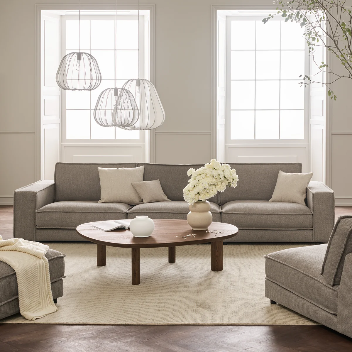 Hergestellt aus hochwertigen Materialien und mit herausragender Handwerkskunst gefertigt, bietet das Noora Modulsofa eine unvergleichliche Sitzerfahrung. Die großzügig gepolsterten Sitzkissen und Rückenlehnen schaffen eine einladende Atmosphäre und bieten lang anhaltenden Komfort für entspannte Momente oder gesellige Treffen.