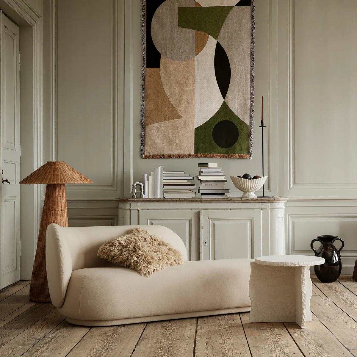Die Rico Chaiselounge von Ferm Living begrüßt Kurven und Volumen in einem klassischen Design, das durch weiche Linien und einen umarmenden Ausdruck definiert ist. Rico ist ein eigenes Möbelstück: Sie kann als Liege dienen, hat Ähnlichkeit mit einem Divan und verströmt Chaiselounge-Vibes. Ihr geschwungener Charakter verleiht dem Wohnzimmer eine moderne Verbindung von Komfort und Eleganz und gibt dem Verwender das Gefühl, in seine mütterliche Umarmung einbezogen zu werden. Für eine besonders angenehme Haptik sorgt die strukturierte Boucle-Oberfläche, die an Leinen erinnert.